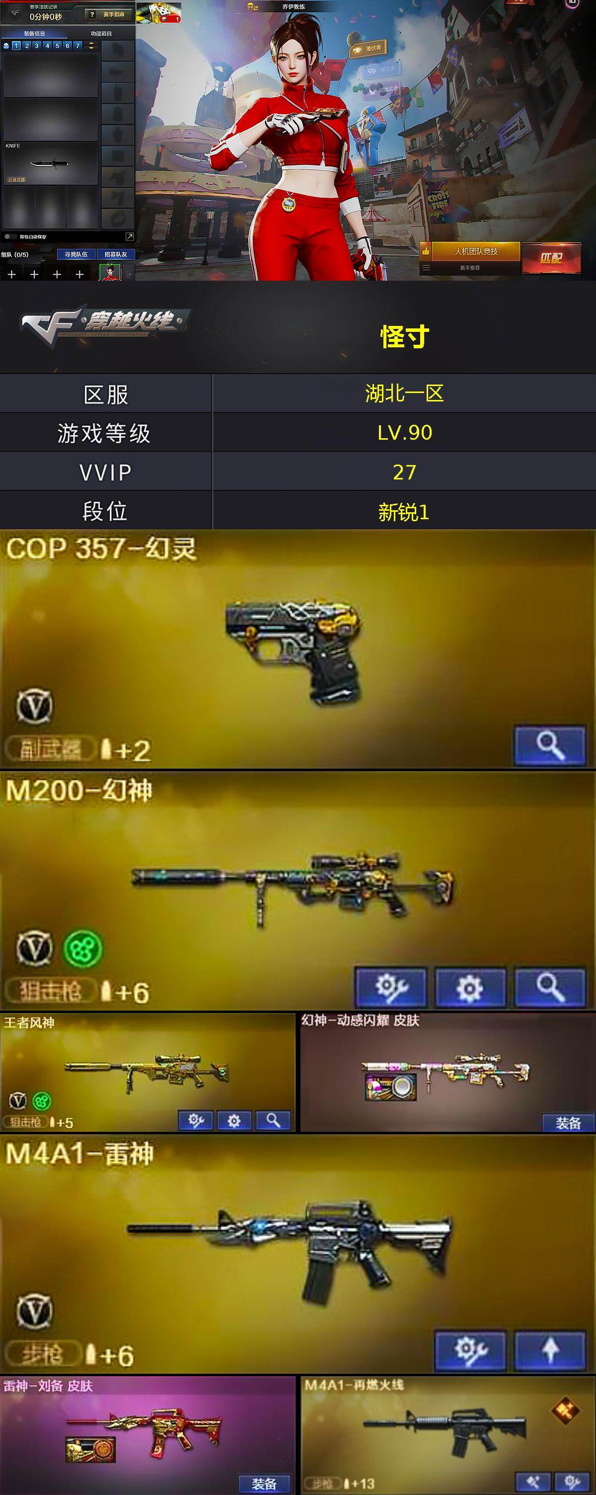 湖北一区-31V-1王者武器数-0炫金武器数【热门武器】:M4A1-青龙,M
