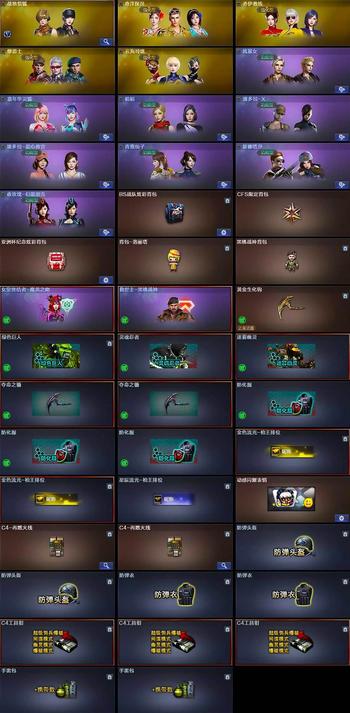 【角色】:战地猎狐,奇洋探员,乔伊教练,修道士,云海玲珑,风暴女,嘉年华灵狐,娟娟,潘多拉-X,潘多拉-甜心教官,青霞仙子,新娜塔莎,夜玫瑰-幻能朋克