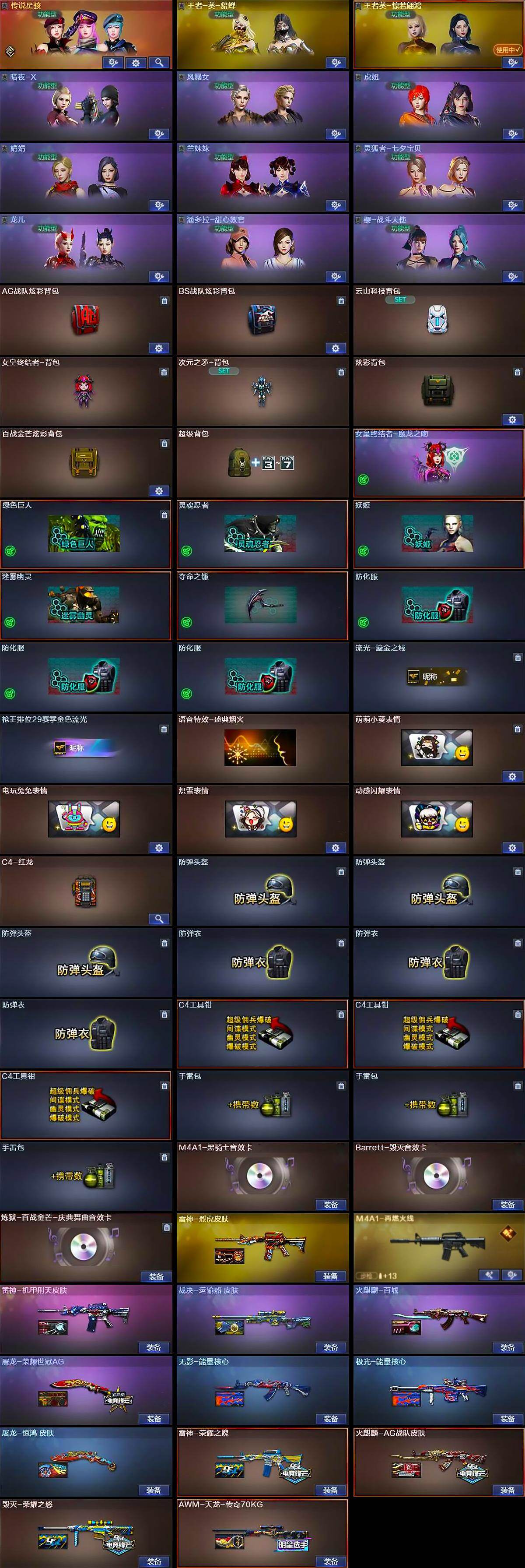 【热门武器】:传说圣谕,M4A1-青龙,M200-幻神,白虎-电玩蓝兔,M4A1-黑骑士*3,汤姆逊-烈龙*2,加特林-炼狱,USP-雷暴,沙鹰-修罗,荣耀世冠-龙啸,金刚伞