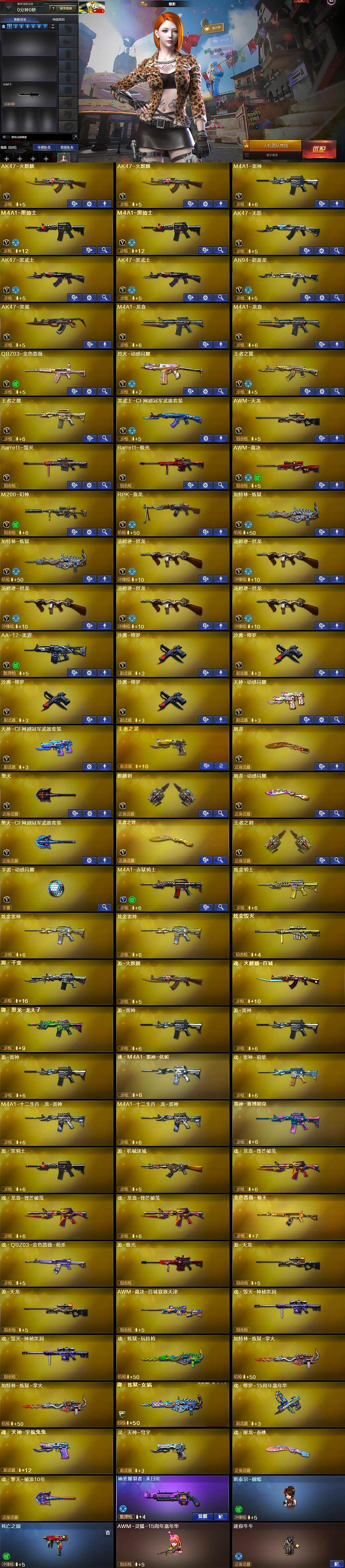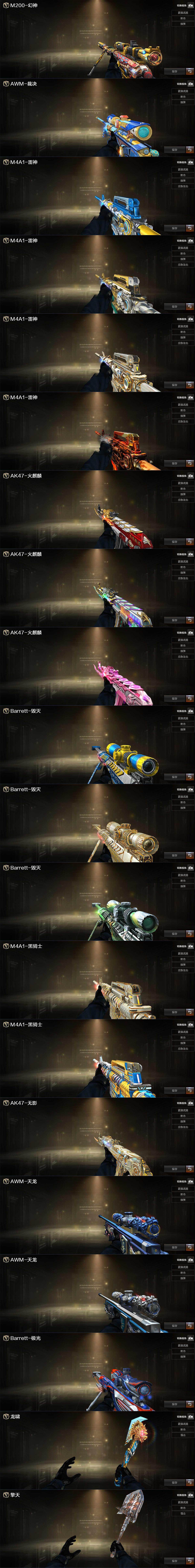【热门武器】:QBZ03-金色蔷薇,M200-幻神,死亡之眼,QBZ03-街机,M4A1-黑骑士*2,汤姆逊-烈龙*5,RPK-盘龙,加特林-炼狱*2,斯泰尔-蝴蝶,沙鹰-修罗*4