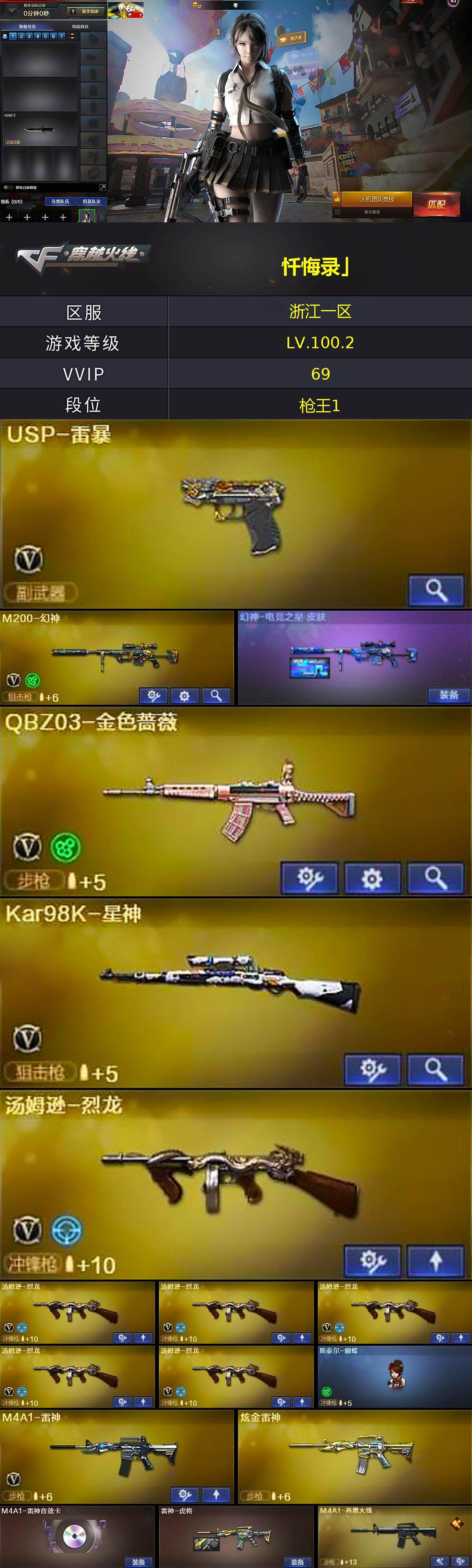 浙江一区-67V-0王者武器数-2炫金武器数【热门武器】:QBZ03-金色蔷