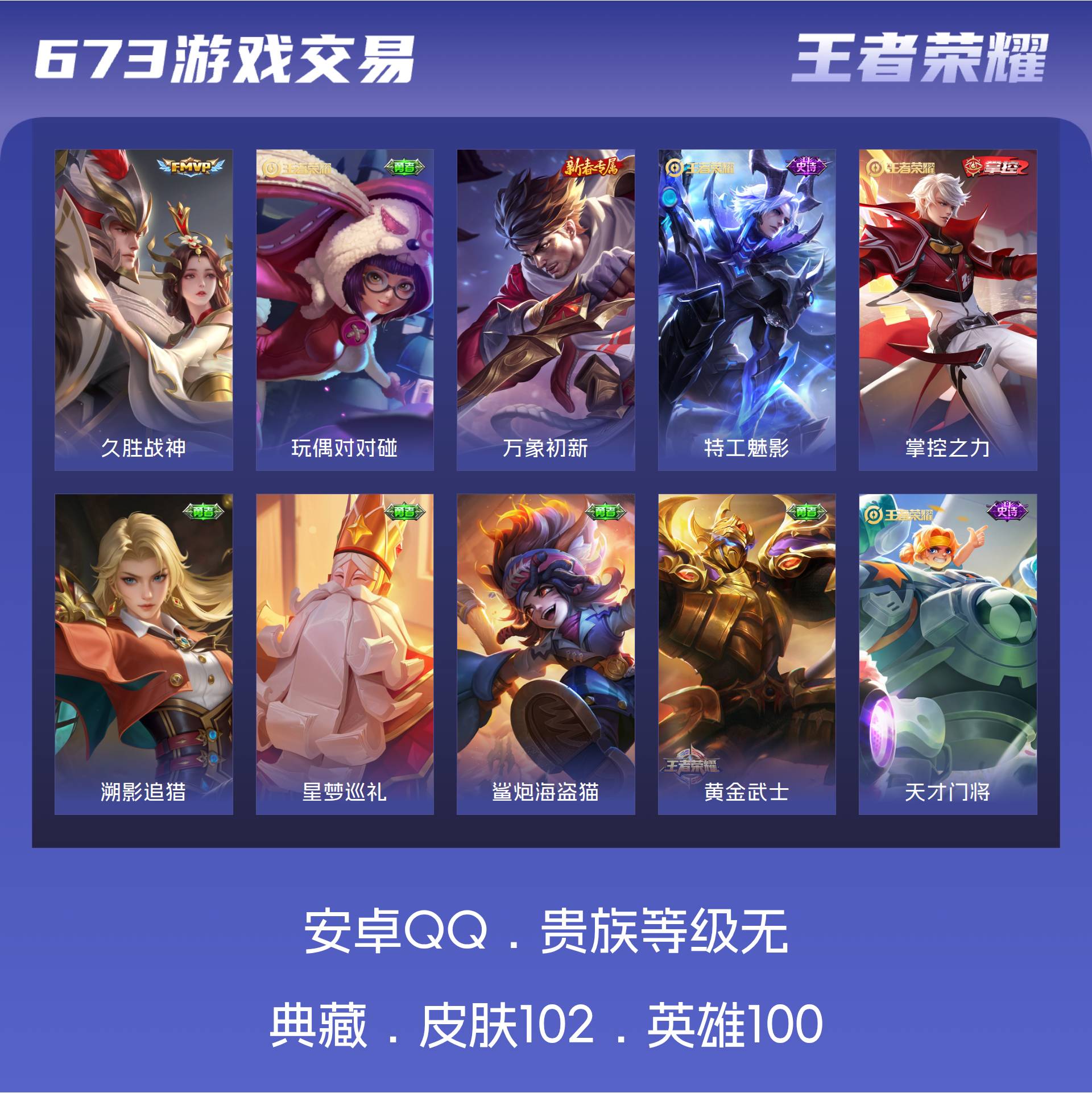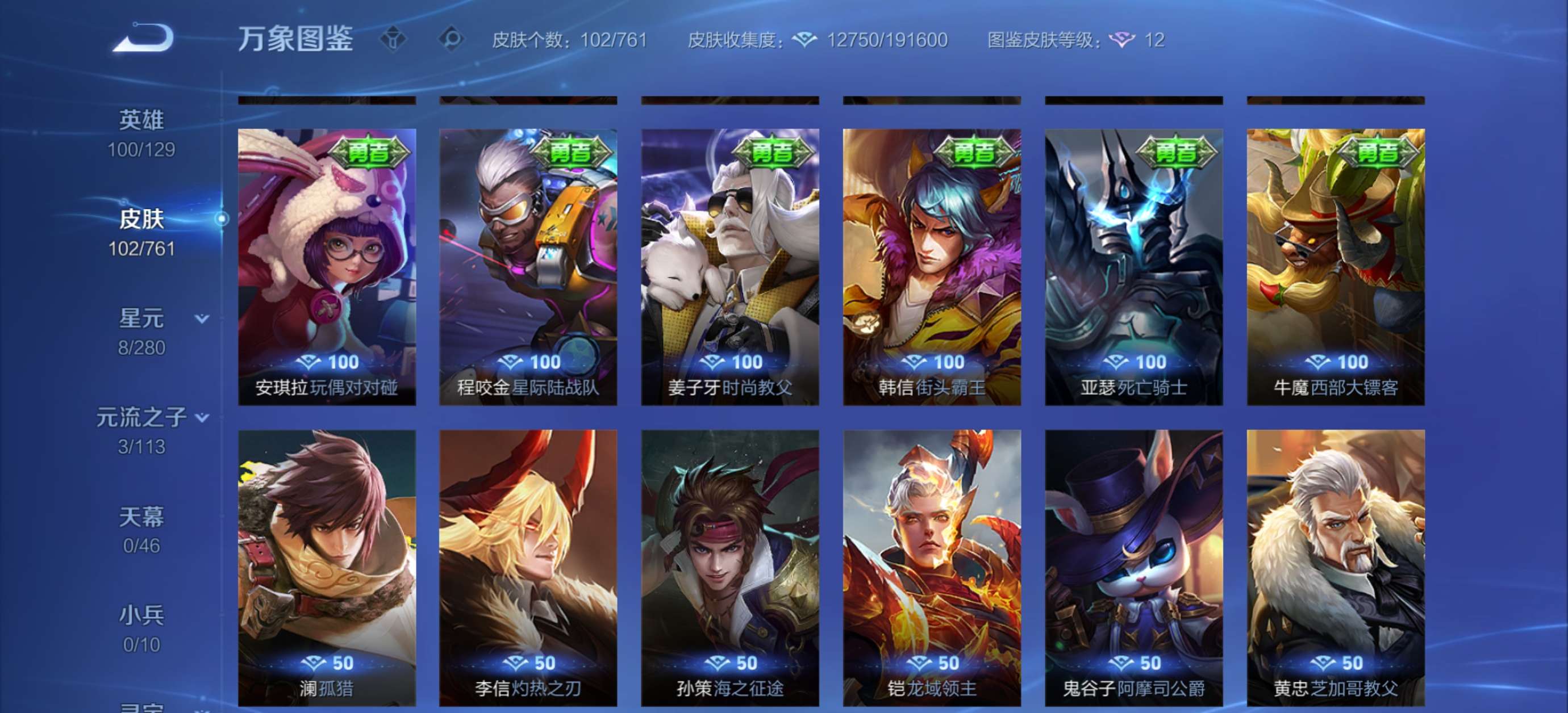 皮肤102 英雄100 尊贵铂金 传说1 其他皮肤107
