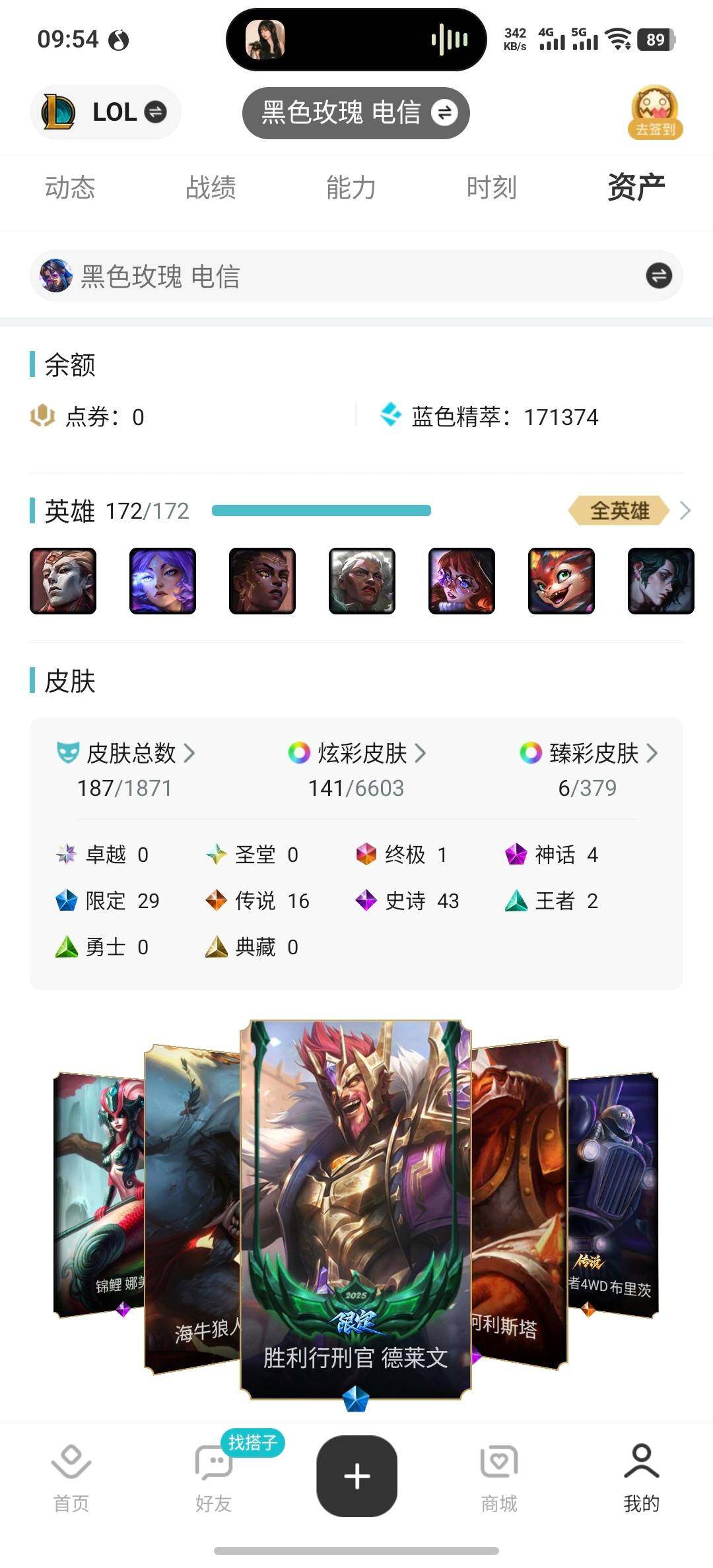 【店主推荐捡漏号】铂金段位-172英雄-187皮肤-141炫彩-1终极-4神话