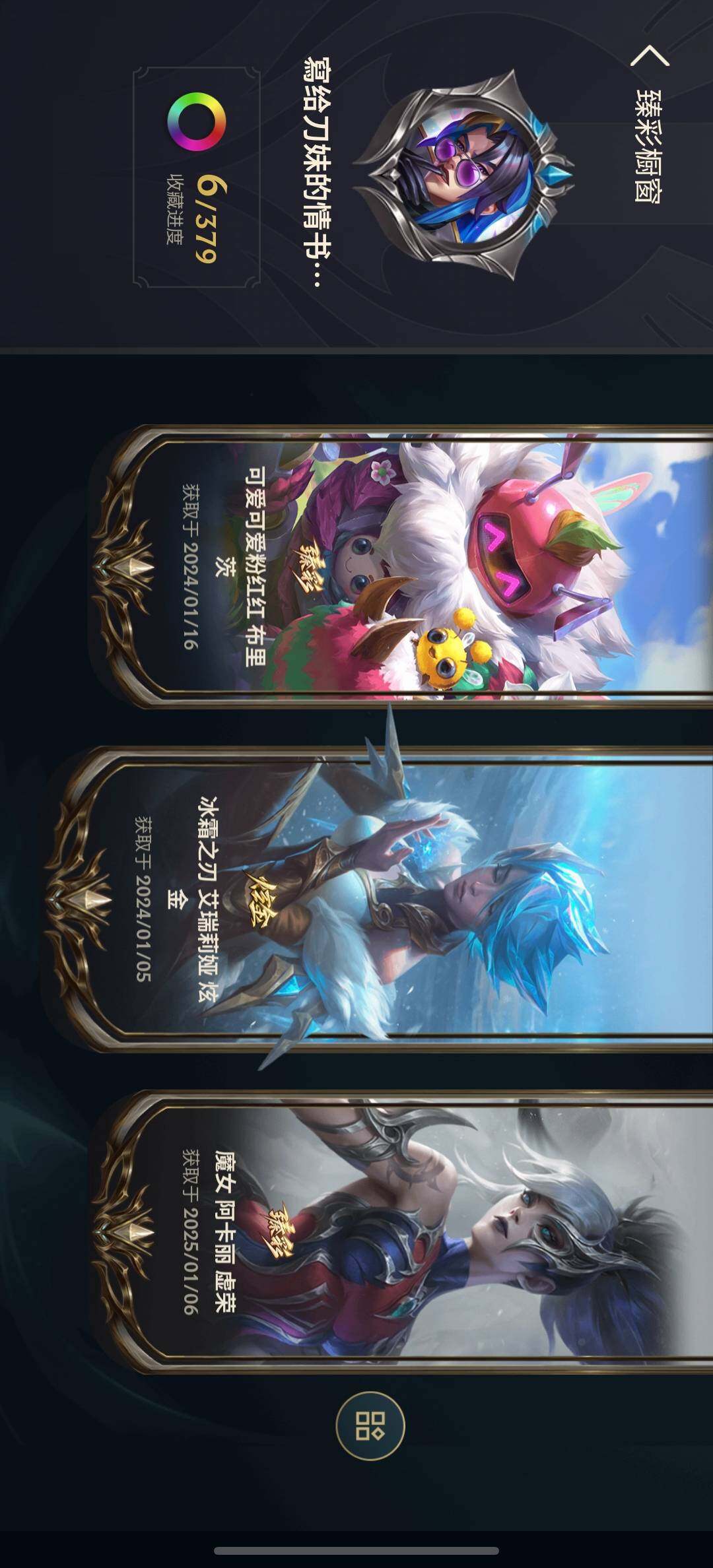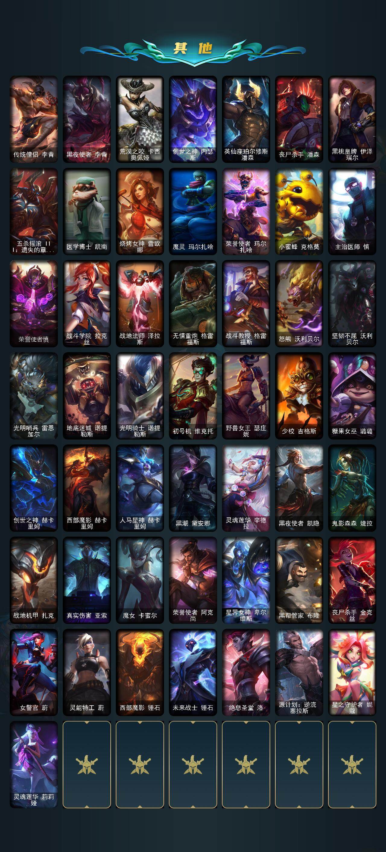 【臻彩皮肤】:无畏骑士瑟庄妮赤子初心,冰霜之刃艾瑞莉娅炫金,冠军典狱长锤石凯旋圣装,霸天异形卡兹克刹那银光,可爱可爱粉红红布里茨,魔女阿卡丽虚荣