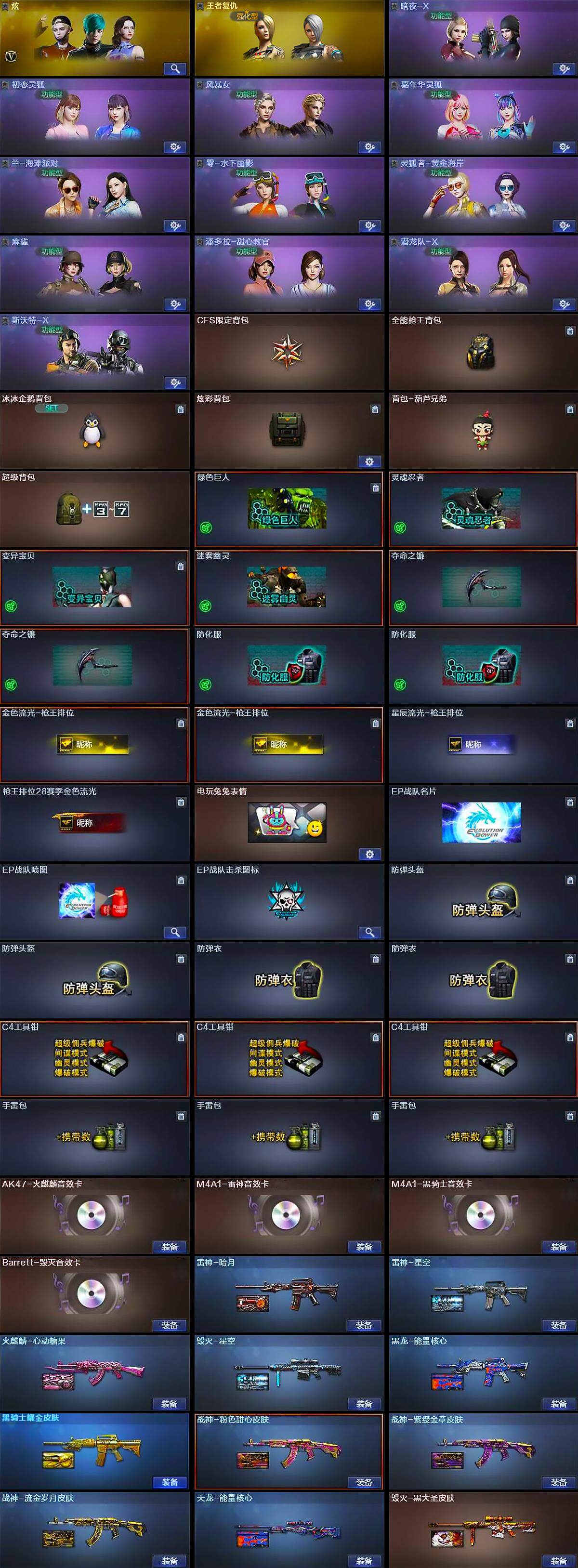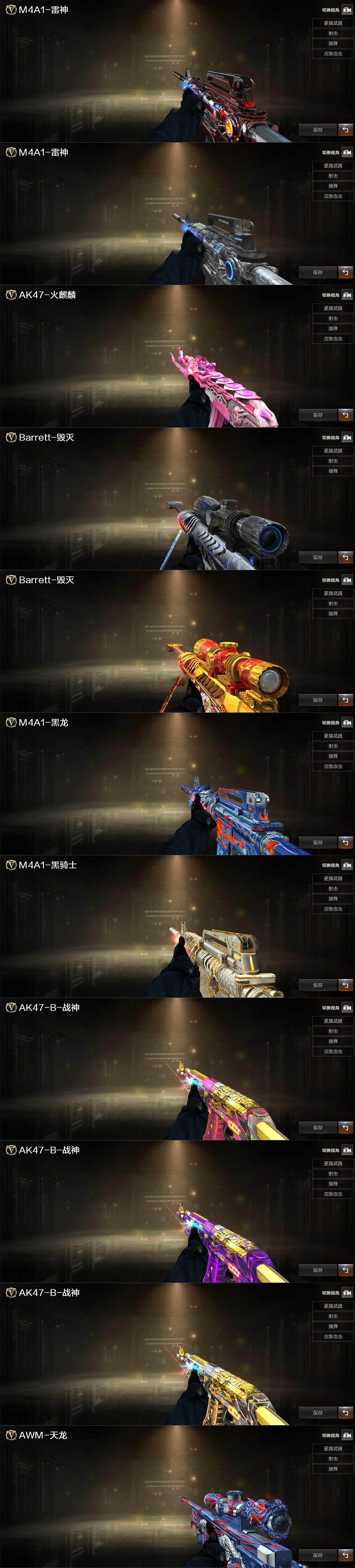 【音效卡】:AK47-火麒麟音效卡,M4A1-雷神音效卡,M4A1-黑骑士音效卡,Barrett-毁灭音效卡