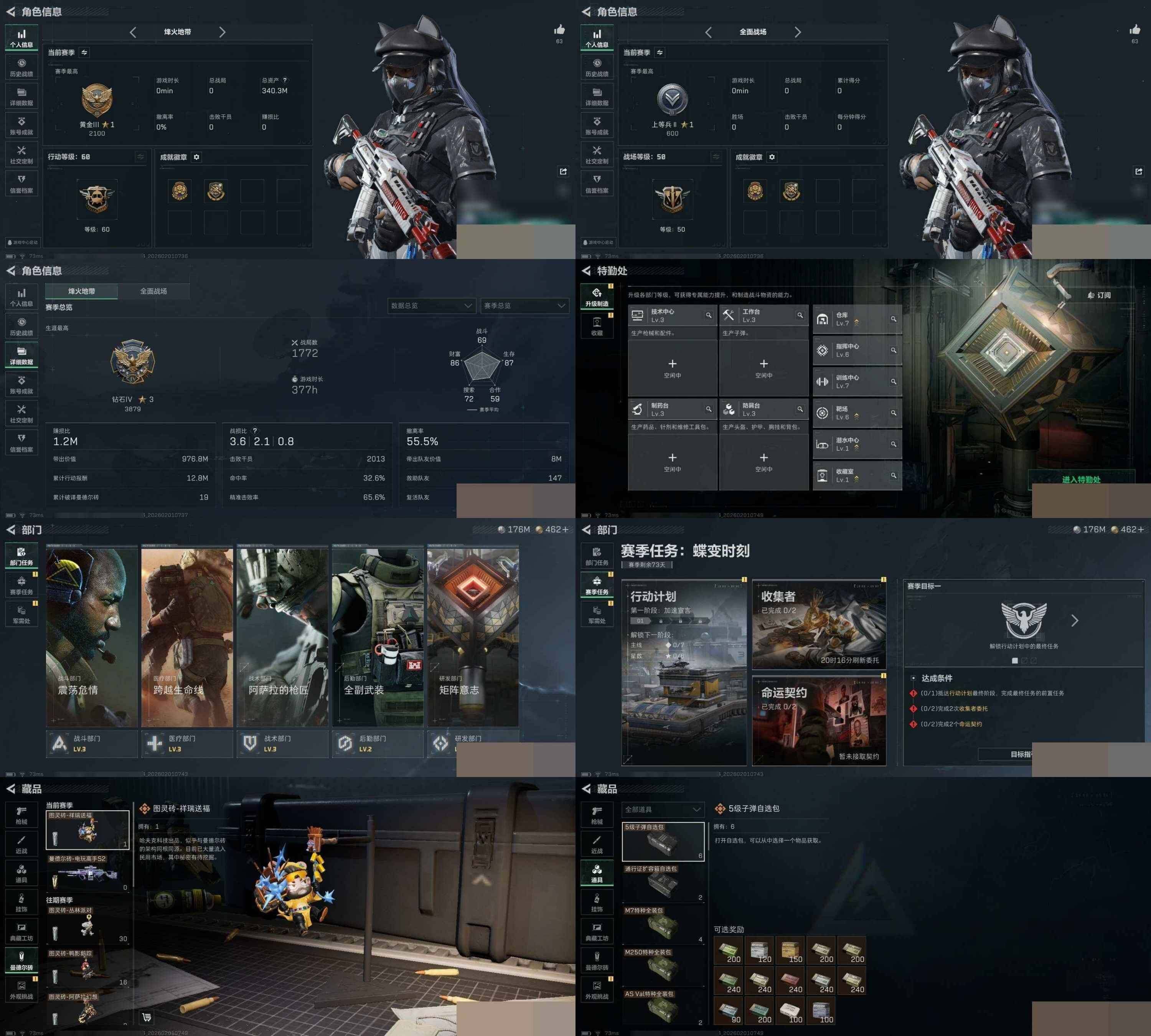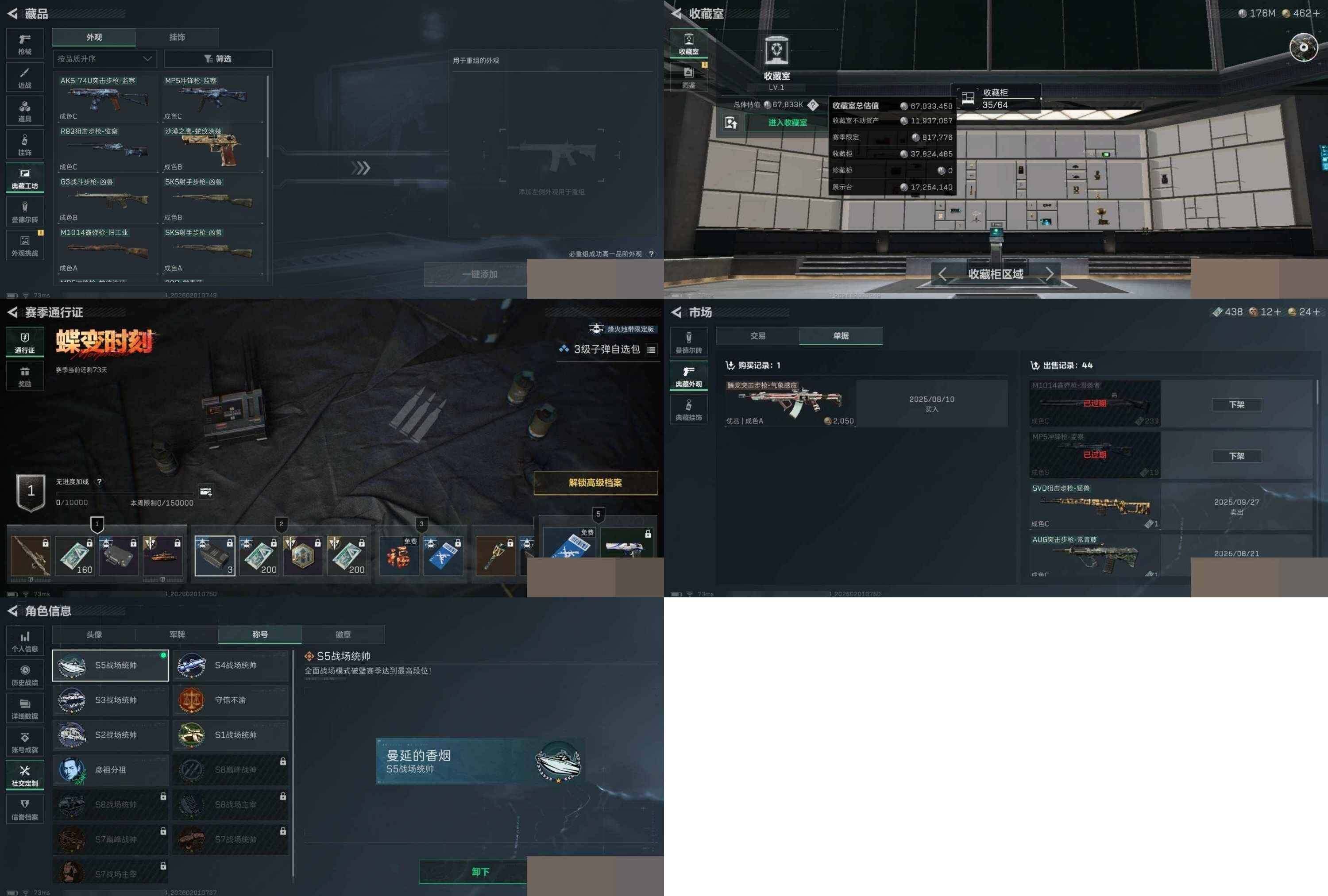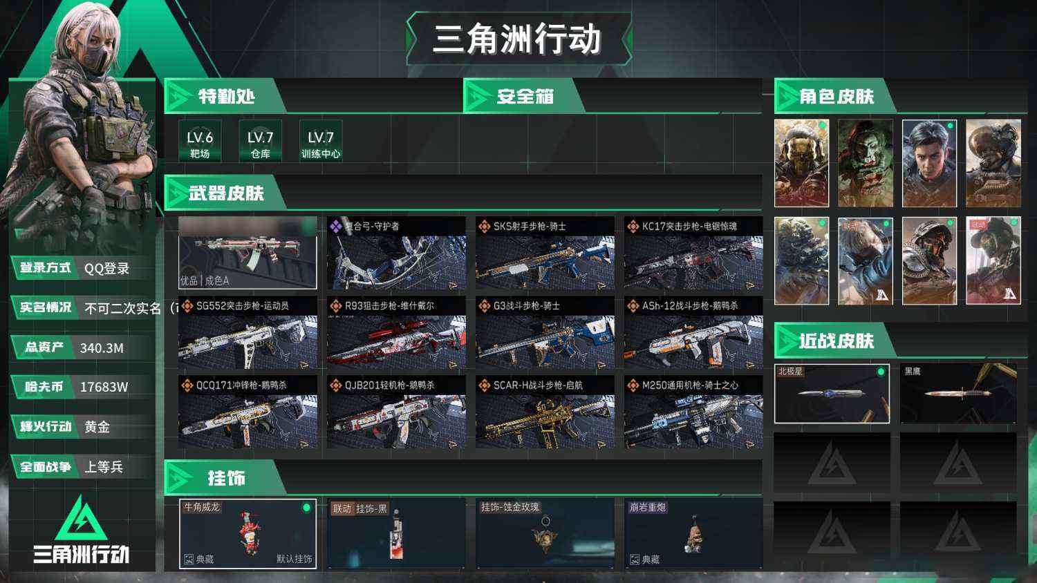 【sjs7743】总资产340m 蚀金 飞虎 天际线 北极星 176m现金 优品a腾龙 训练7靶场6 烽火地带段位: 黄金 全面战场段位: 上等兵 总资产: 340000000 哈夫币: 176837000 sjs7743 干员外观: 红狼-蚀金玫瑰,威龙-壮志凌云(S3),无名-夜鹰(S4),威龙-飞虎,蜂医-送葬人·无题密令(S5),露娜-黑·天际线,深蓝-不破誓约(S6),红狼-电锯惊魂,露娜-金牌射手(S7) 传说武器皮肤: M4A1突击步枪-蚀金玫瑰,SCAR-H战斗步枪-铁艺苍穹,