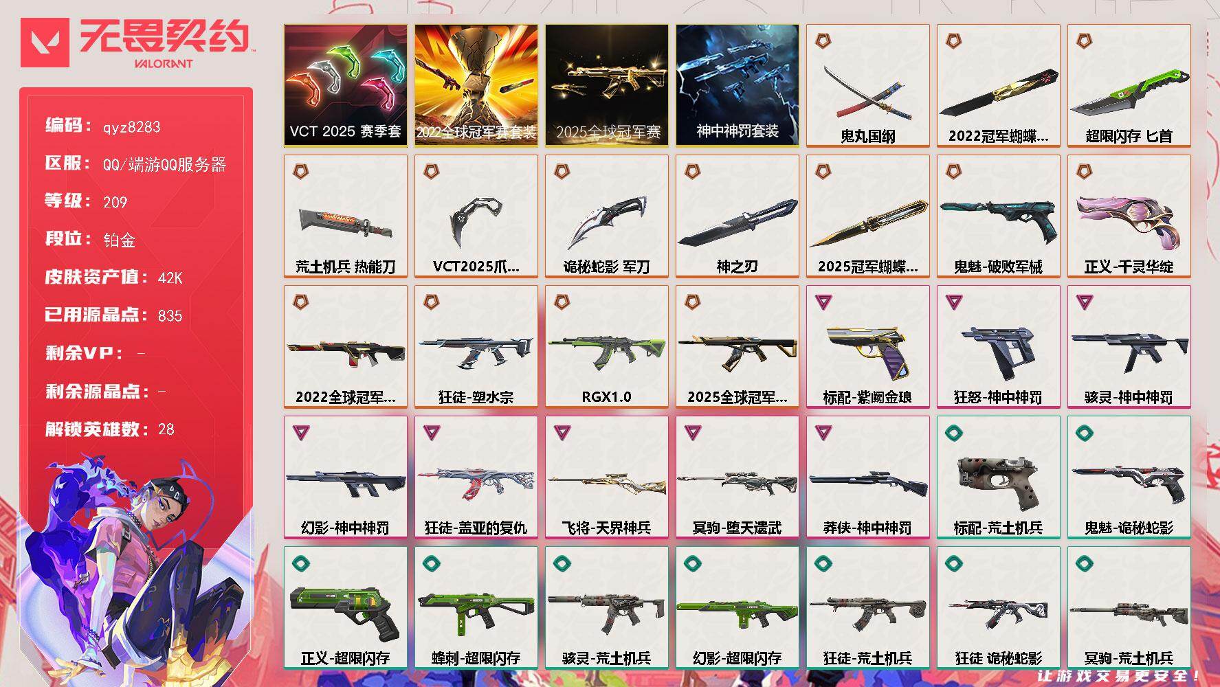 【近战武器】:近战武器-2025全球冠军赛 蝴蝶刀,近战武器-2022全球冠军赛 蝴蝶刀,近战武器-神之刃,近战武器-VCT 2025 爪刀,近战武器-落英飞旋,近战武器-鬼丸国纲,近战武器-超限闪存 匕首,近战武器-荒土机兵 热能刀,近战武器-诡秘蛇影 军刀