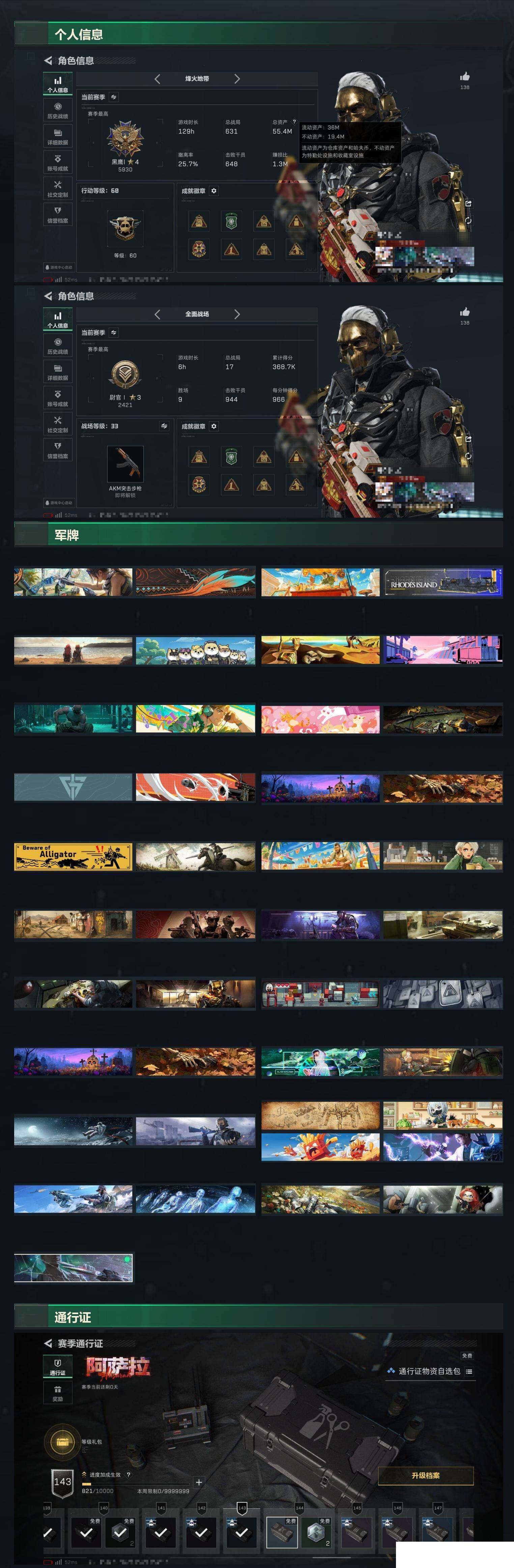 【sjs7598】55m 蚀金 天际线 北极星 训练6靶场6 烽火地带段位: 黑鹰 全面战场段位: 尉官 总资产: 55000000 哈夫币: 45000 sjs7598 干员外观: 红狼-蚀金玫瑰,蜂医-送葬人·无题密令(S5),露娜-黑·天际线,深蓝-不破誓约(S6),红狼-电锯惊魂,露娜-金牌射手(S7) 传说武器皮肤: M4A1突击步枪-蚀金玫瑰,近战-北极星,K437突击步枪-北极星,QCQ171冲锋枪-北极星,725双管霰弹枪-送葬人-无题密令,M4A1突击步枪-阿米娅,CAR-15