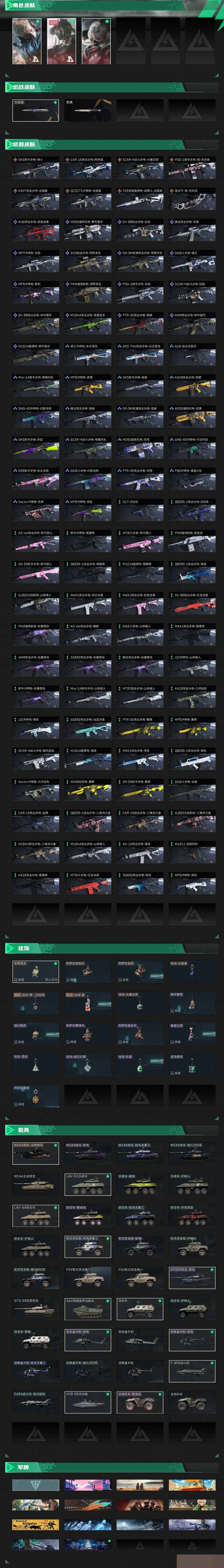 【sjs7754】北极星 水墨 天际线 81m 特勤双4 烽火地带段位: 黄金 全面战场段位: 列兵 总资产: 82000000 哈夫币: 386000 sjs7754 干员外观: 骇爪-水墨云图,蜂医-送葬人·无题密令(S5),露娜-黑·天际线 传说武器皮肤: SCAR-H战斗步枪-水墨云图,近战-北极星,K437突击步枪-北极星,QCQ171冲锋枪-北极星,725双管霰弹枪-送葬人-无题密令,CAR-15突击步枪-阿米娅,复合弓-黑-天际线,PSG-1射手步枪-黑-天际线 史诗武器皮肤: