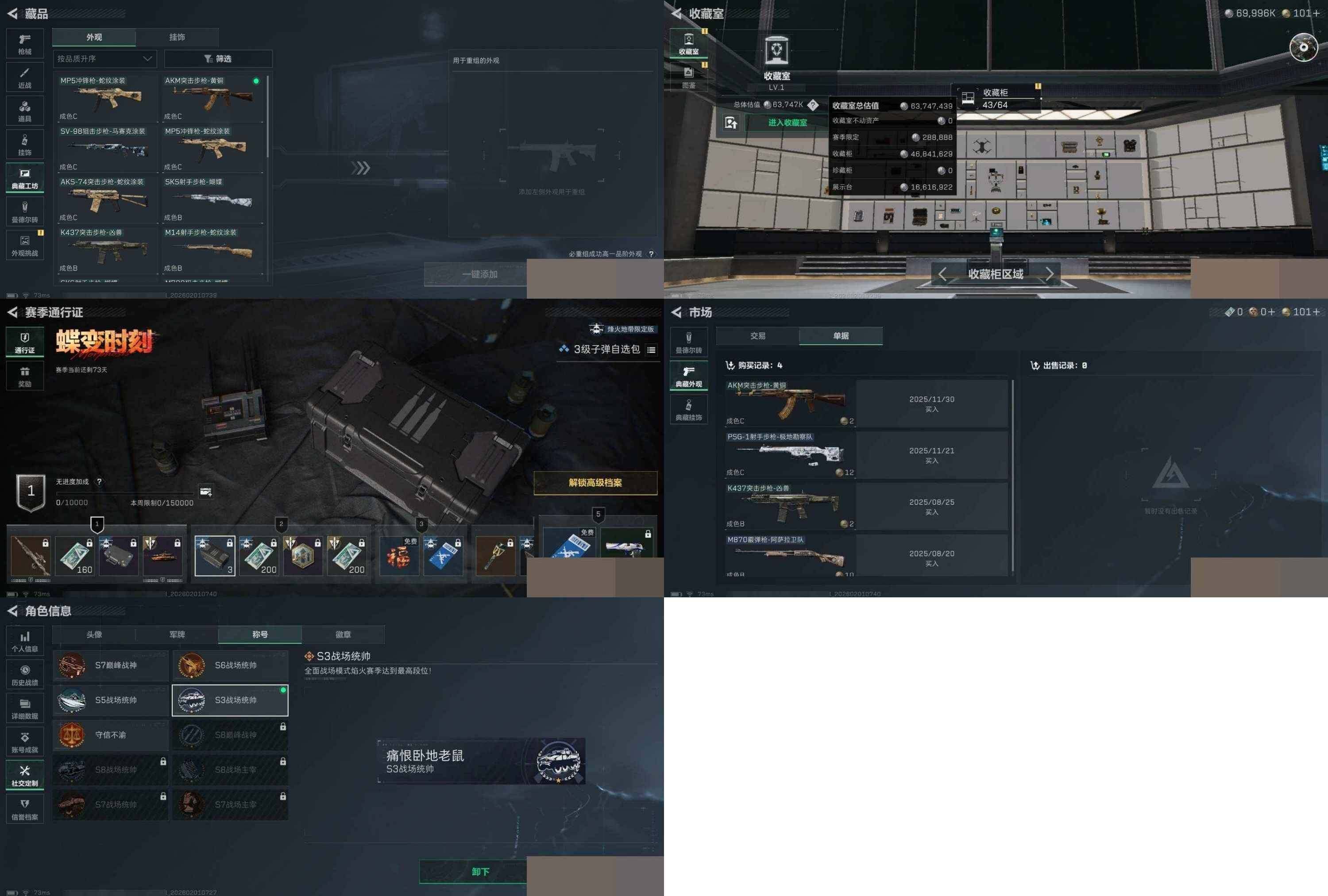 【sjs7741】总资产378m 等级60 特勤体力7 负重4 指挥6 可二次 无封禁 烽火地带段位: 钻石 全面战场段位: 军士长 总资产: 378000000 哈夫币: 69996000 sjs7741 干员外观: 无名-夜鹰(S4),深蓝-不破誓约(S6),红狼-电锯惊魂 传说武器皮肤: SR-25射手步枪-水墨云图,M7战斗步枪-机动小队,AK-12突击步枪-夜鹰,SMG45冲锋枪-骑士,M4A1突击步枪-阿米娅,CAR-15突击步枪-阿米娅,复合弓-黑-天际线,AWM狙击步枪-捞点薯条