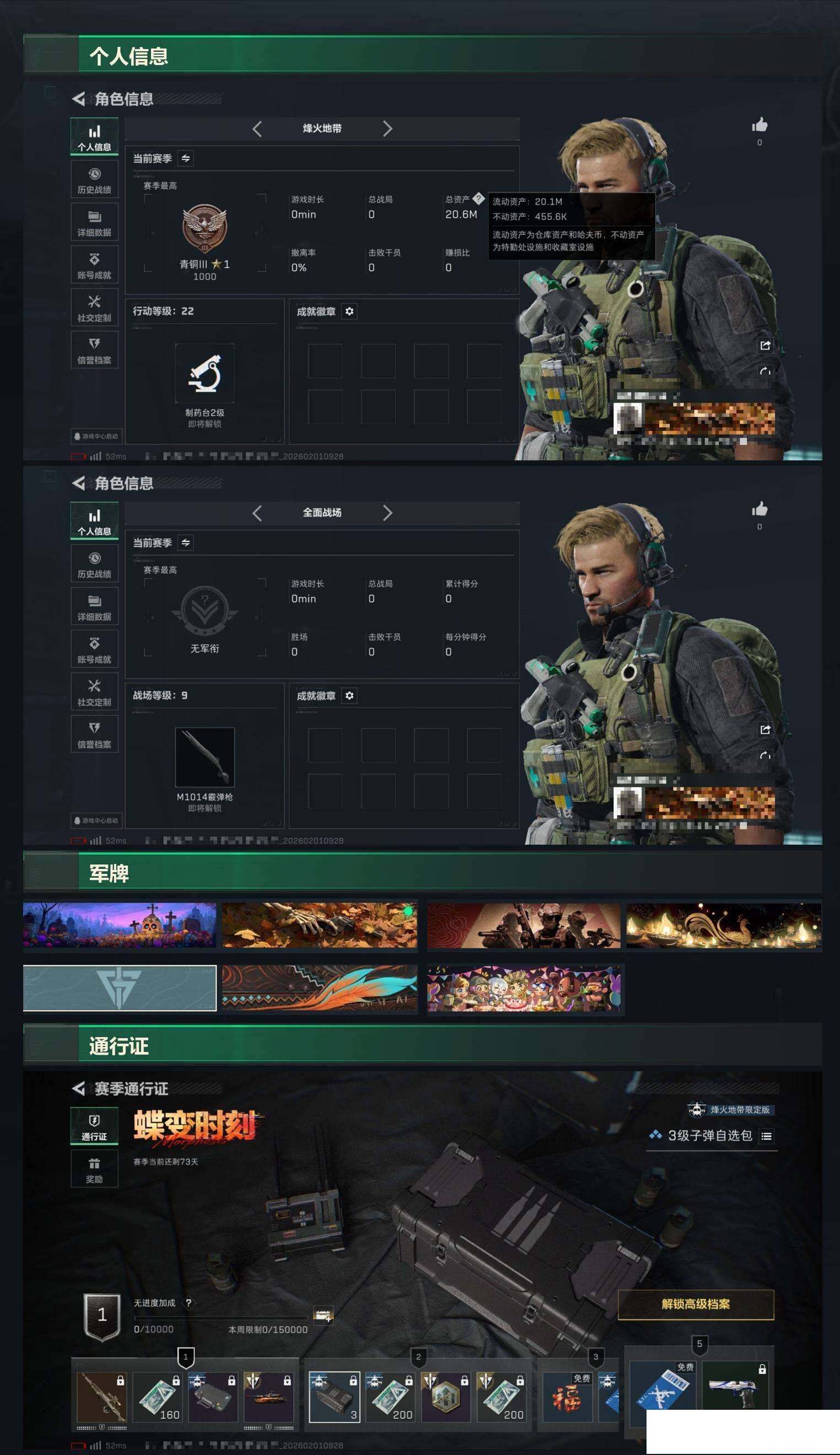 【sjs4412】总资产20m 维什戴尔 烽火地带段位: 青铜 全面战场段位: 列兵 总资产: 20000000 哈夫币: 11108000 sjs4412 干员外观: 骇爪-维什戴尔 传说武器皮肤: 勇士冲锋枪-能天使-午夜邮差,R93狙击步枪-维什戴尔,SCAR-H战斗步枪-启航 史诗武器皮肤: MP5冲锋枪-战术竞备 亮点: 20m总资产-11108k哈伏币-22烽火等级-青铜-9战场等级-列兵【干员外观】:骇爪-维什戴尔【近战皮肤】:近战-黑鹰【传说外观】:SCAR-H战斗步枪-启航,勇
