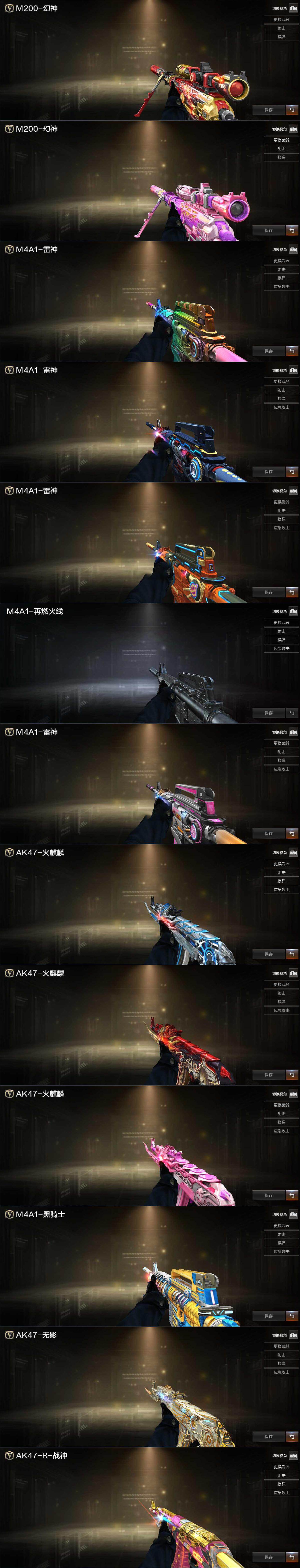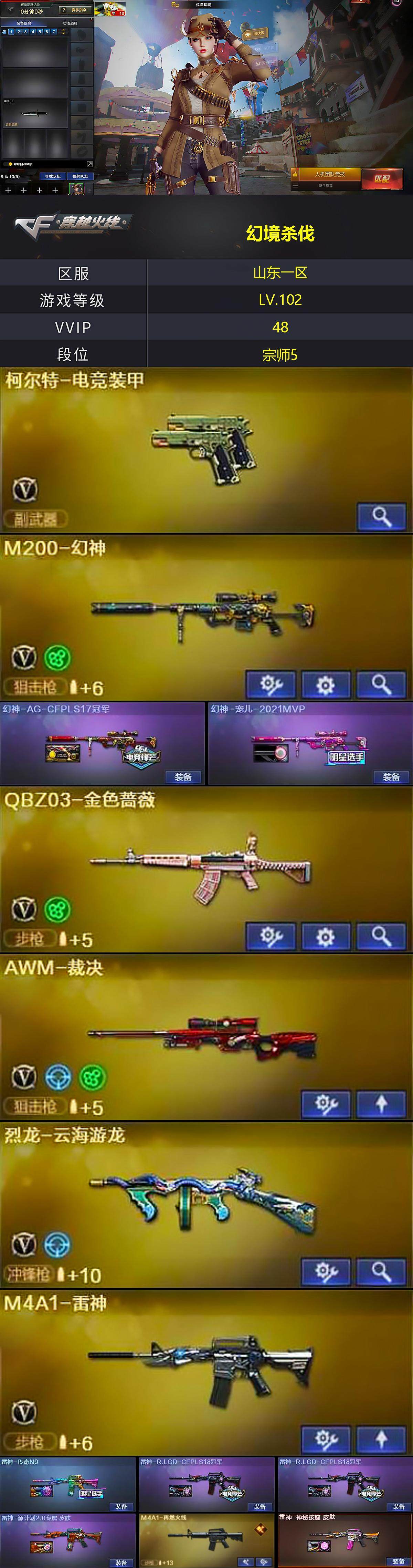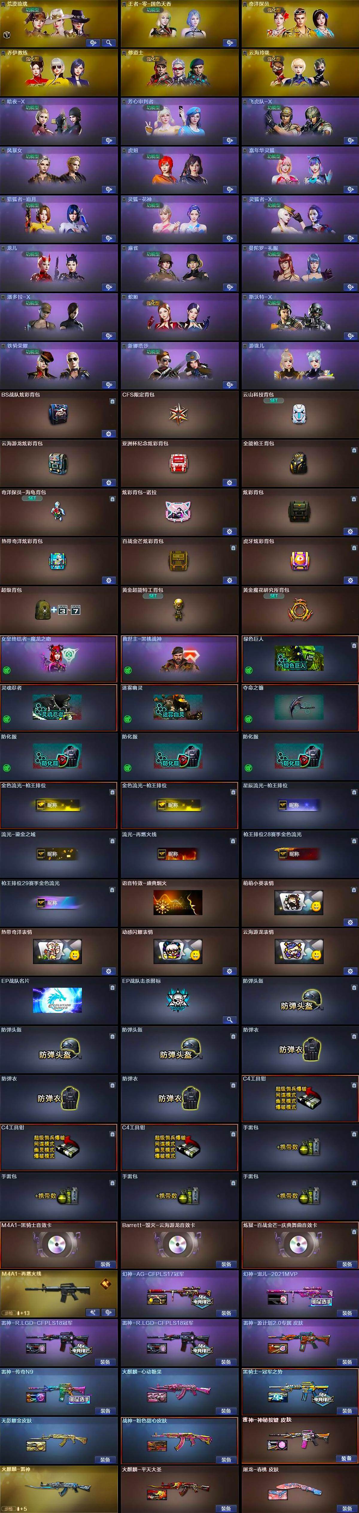 【皮肤】:幻神-AG-CFPLS17冠军,幻神-宠儿-2021MVP,雷神-传奇N9,雷神-R.LGD-CFPLS18冠军*2,雷神-源计划2.0专属 皮肤,M4A1-再燃火线,雷神-神秘按键 皮肤,