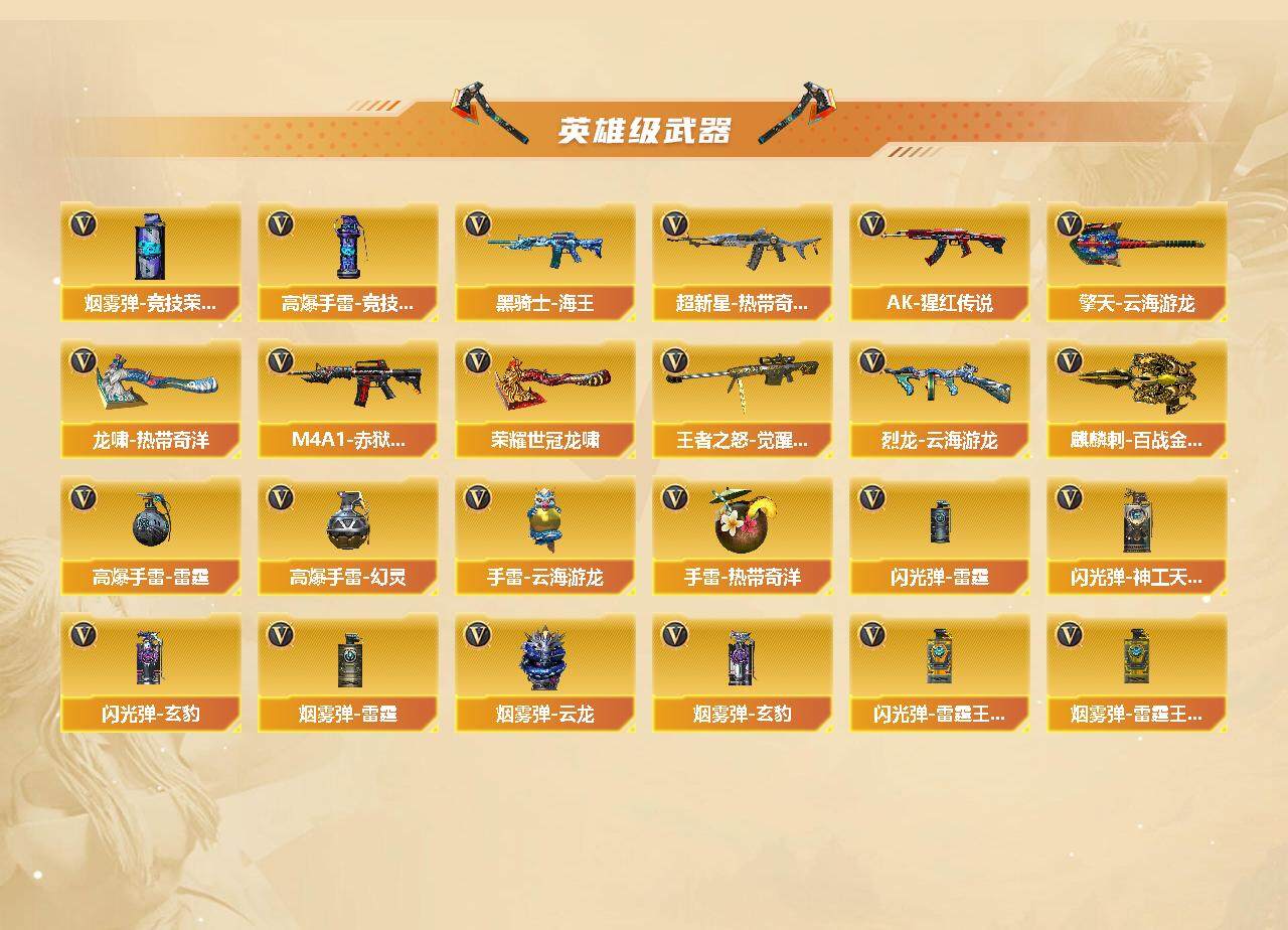 【热门武器】:QBZ03-金色蔷薇,M200-幻神,M4A1-黑骑士,荣耀世冠-龙啸