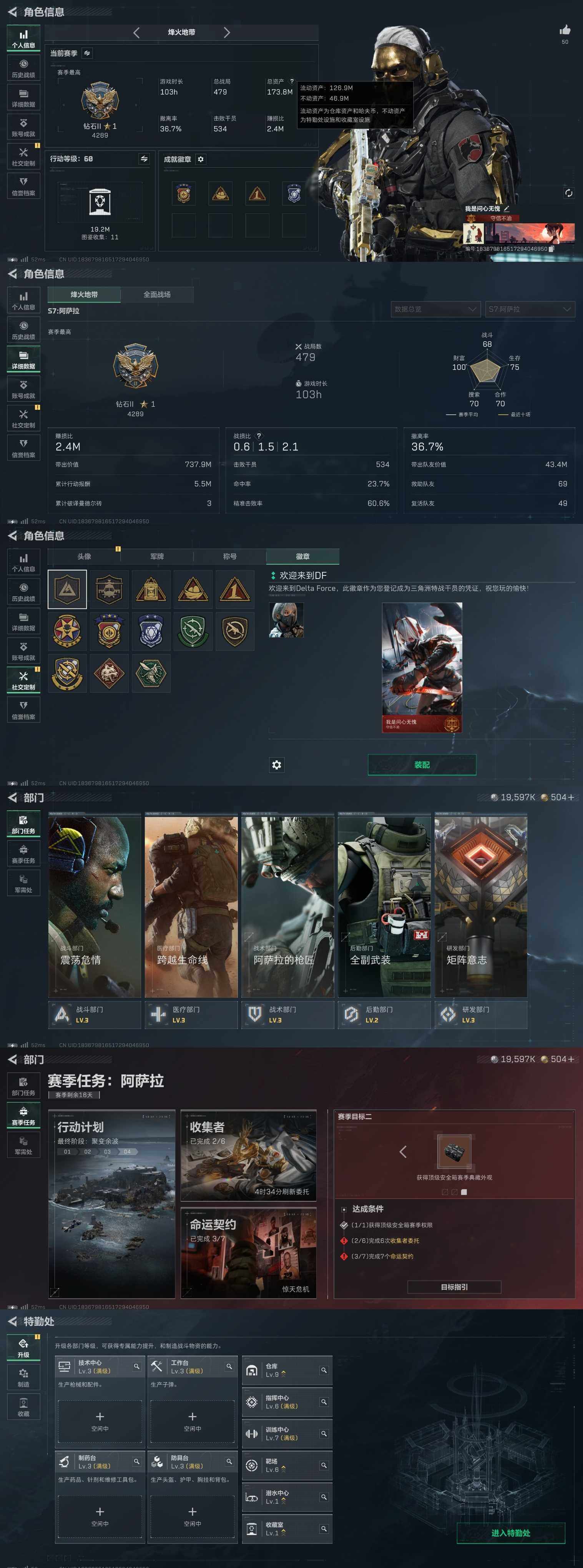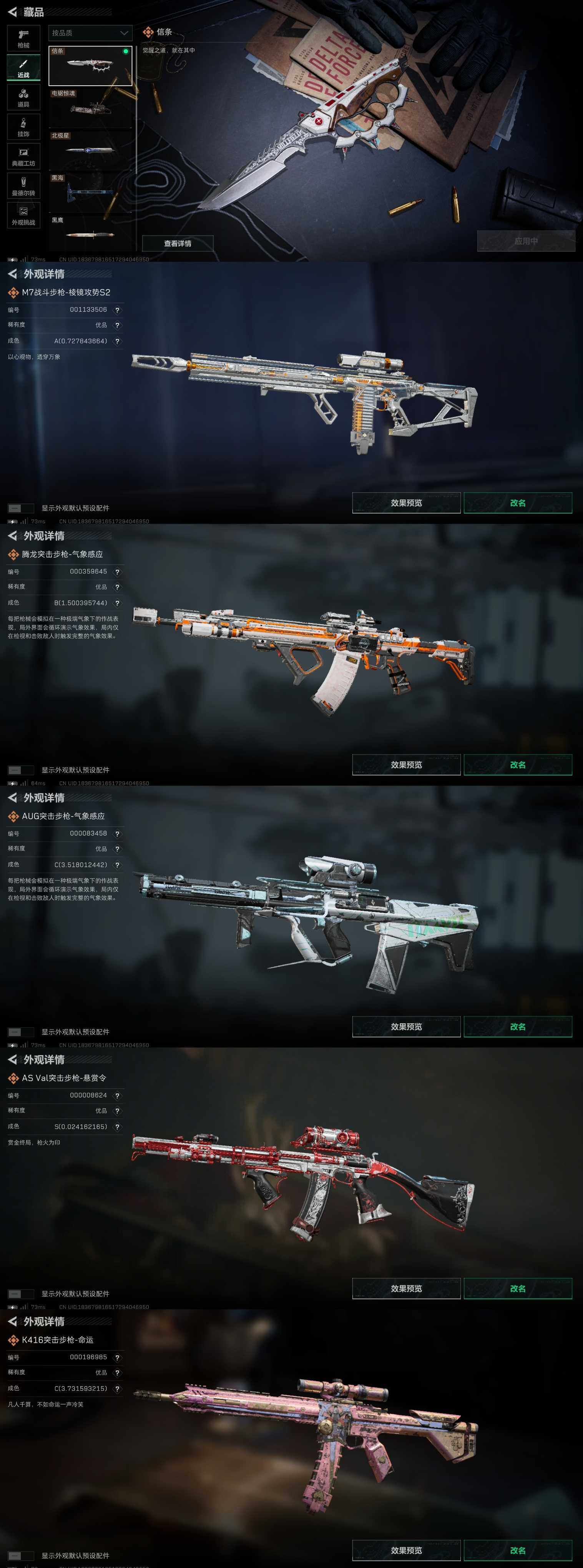 173M 信条 北极星 电锯 黑海 全红皮差骇爪联动 红狼电锯 无名 蜂医 深蓝 露娜 赛季皮 34发aw 8个咖啡豆 1颗非洲之心 504三角券 命运k416优品C 气象冰AUG优品C 棱镜M7优品A 巨浪优品S 气象火腾龙优品B 3个黑夜猎手挂饰 余烬之影挂饰 2个统统拿走挂饰 通行证 保险3*3 特勤9仓7体6负重