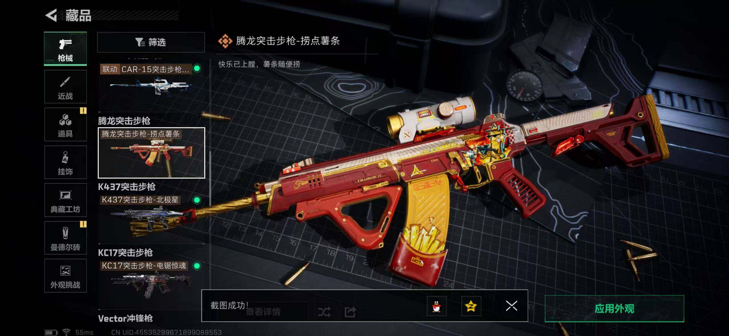 【传说外观】:M4A1突击步枪-蚀金玫瑰,M4A1突击步枪-阿米娅,ASh-12战斗步枪-鹅鸭杀,K41