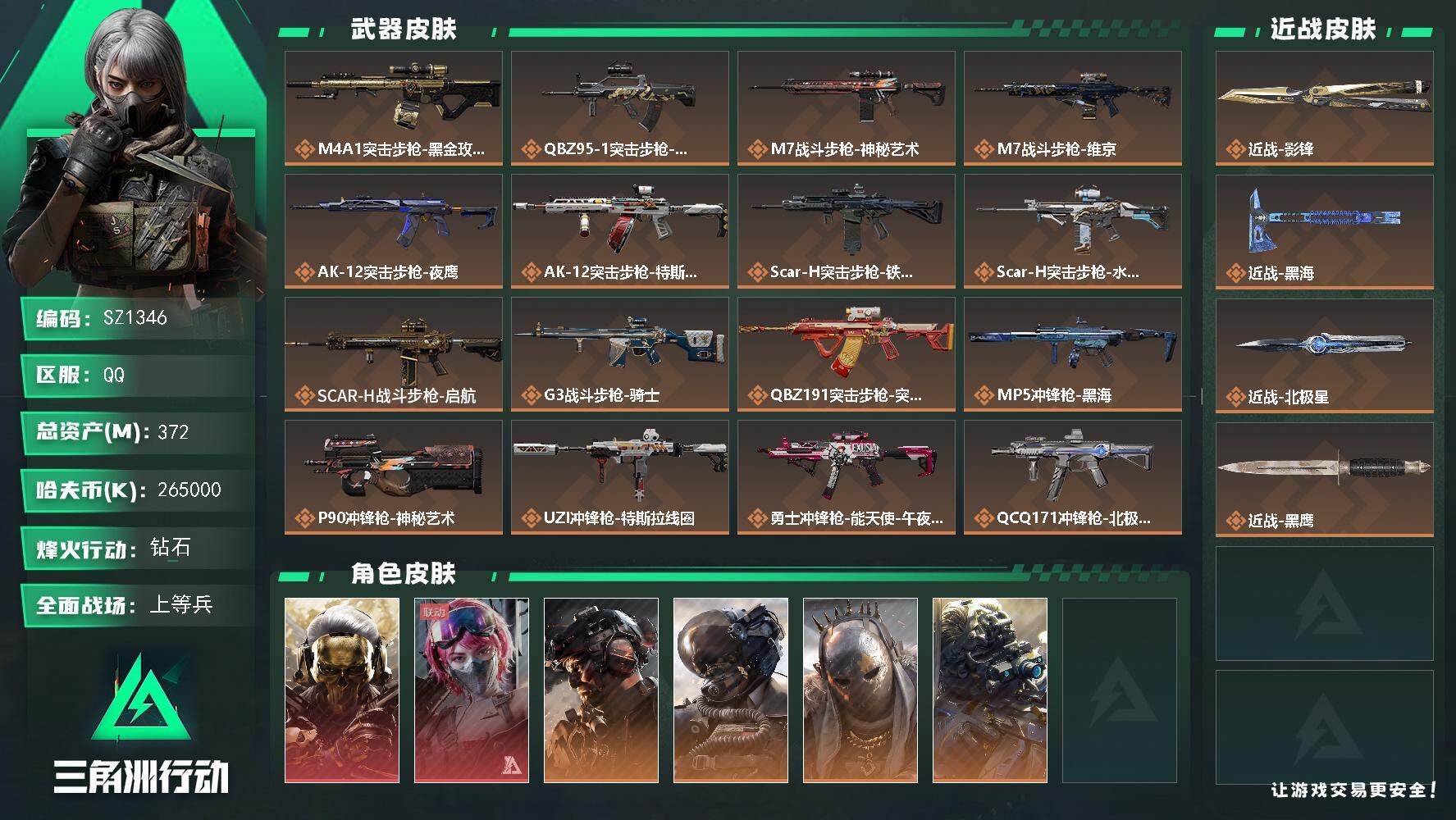 【SJZX1305】总资产(M):160M/哈夫币(K):3554K/哈夫币(K):3554K/传说枪皮数:33/全面战场等级:50_段位:上等兵/烽火地带等级:60_段位:钻石/红狼-蚀金玫瑰/露娜-黑·天际线/骇爪-维什戴尔/威龙-壮志凌云/蜂医-送葬人·无题密令/无名-夜鹰/深蓝-不破誓约/红狼-电锯惊魂/露娜-金牌射手/近战-北极星/近战-信条/近战-黑海/近战-影锋/近战-电锯惊魂/近战-黑鹰/M4A1突击步枪-蚀金玫瑰/M4A1突击步枪-阿米娅/ASh-12战斗步枪-鹅鸭杀/SG55