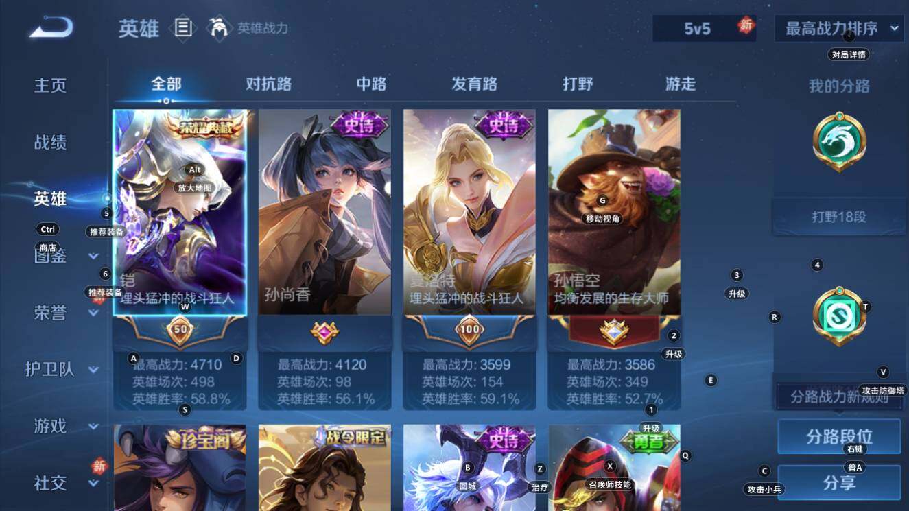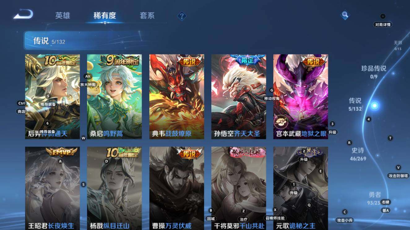 5按键,星币2700 安卓Q-V6-127英雄-186皮肤-1典藏皮肤-5传说
