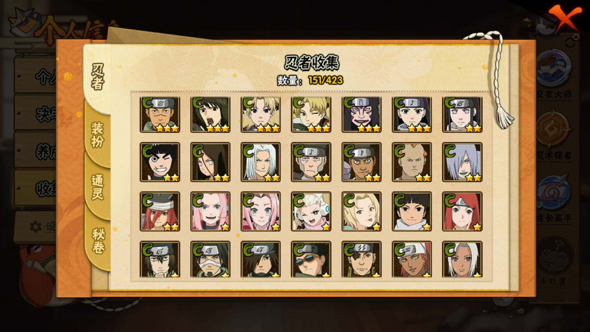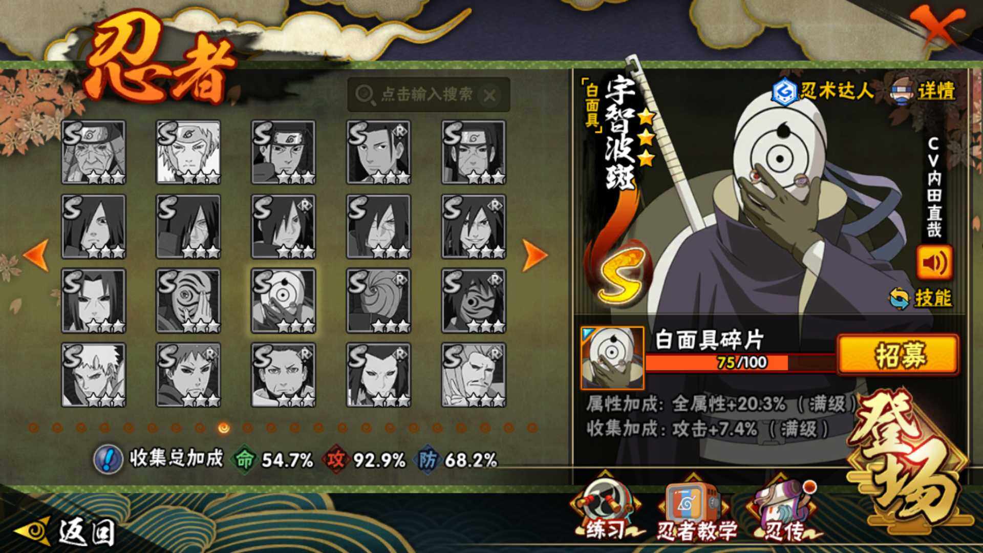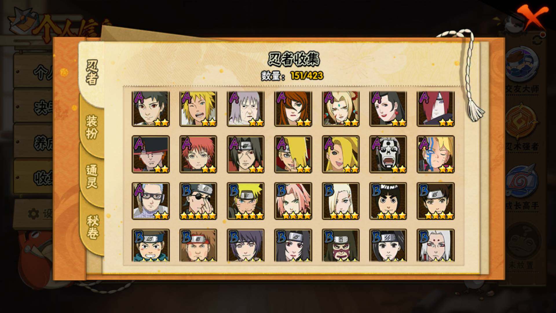 【S级忍者】:千手扉间「秽土转生」(3星),春野樱「忍界大战」(3星),宇智波带土「忍界大战」(3星),艾「忍界大战」(3星),宇智波鼬「须佐能乎」(3星),宇智波止水「须佐能乎」(3星),自来也「舞之豪杰」(3星)