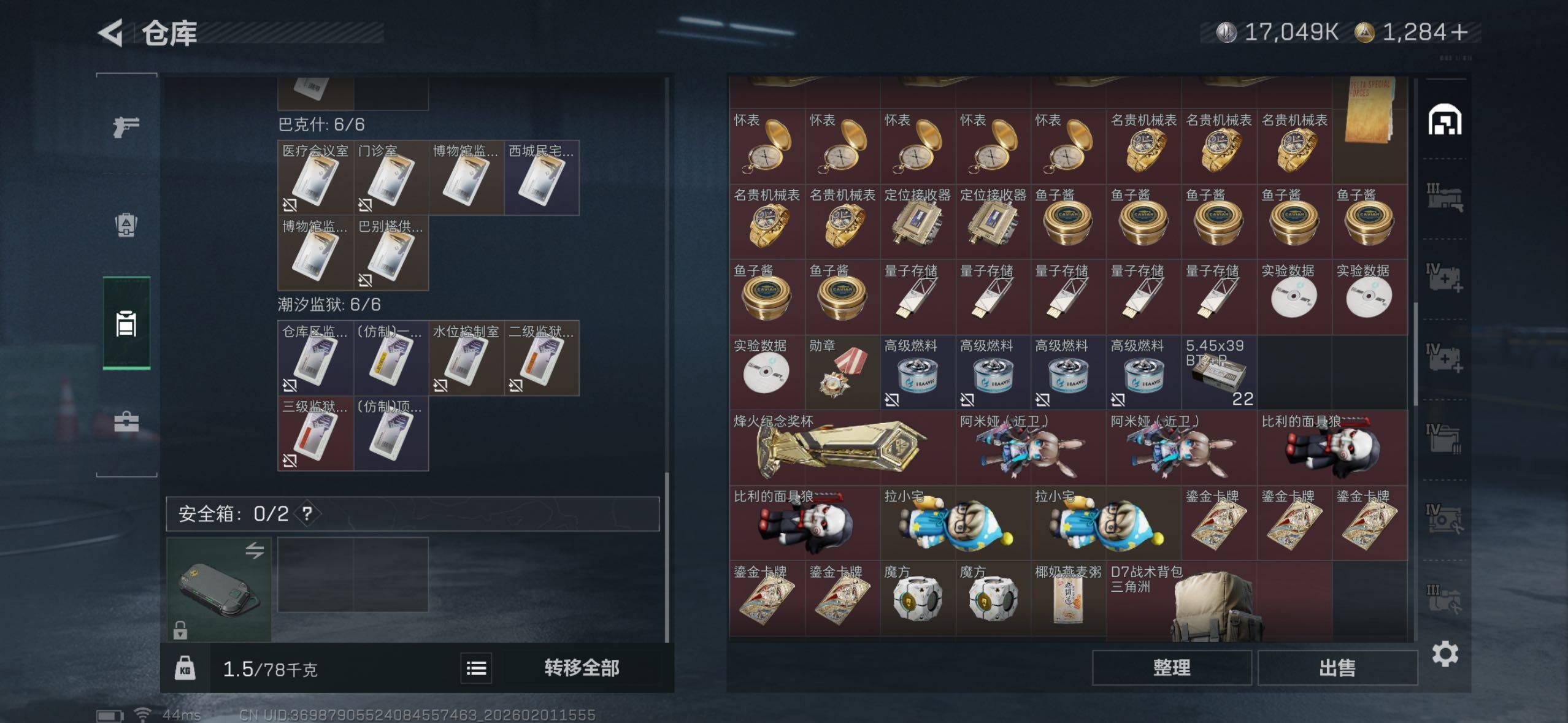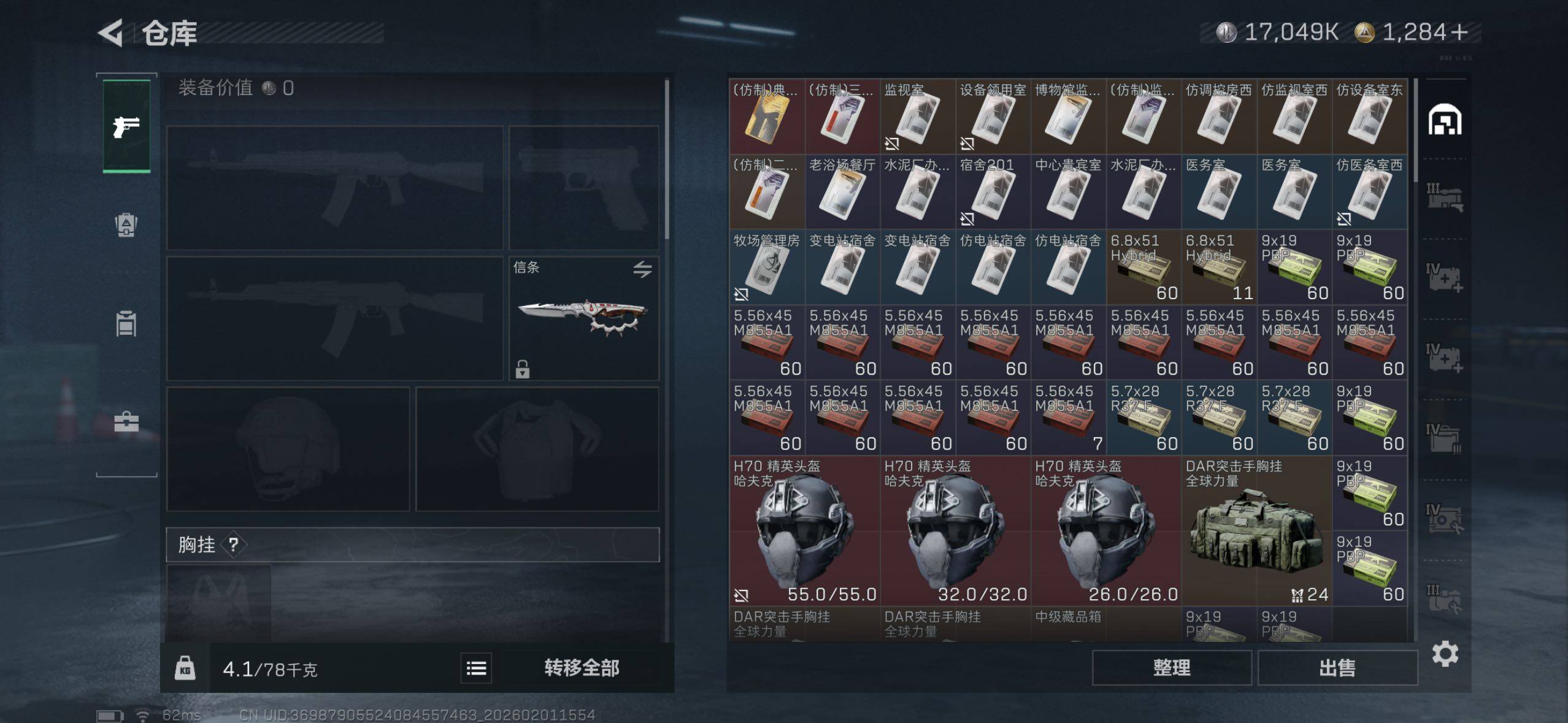 【SJ1000】行动等级:60 总资产:161M 哈夫币:1700W 近战武器