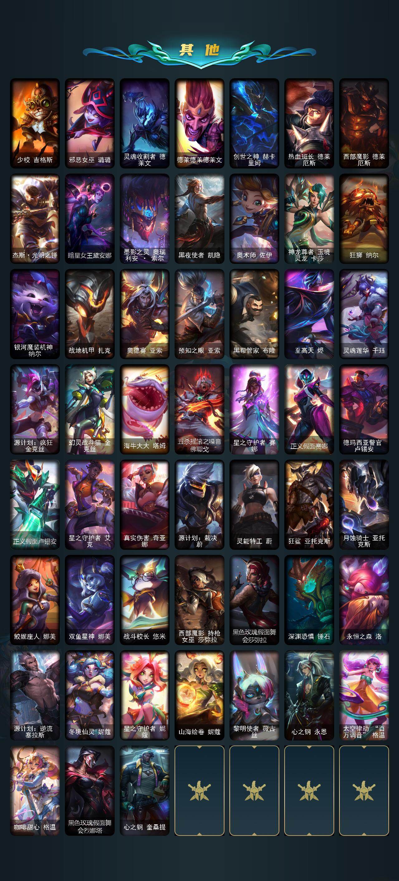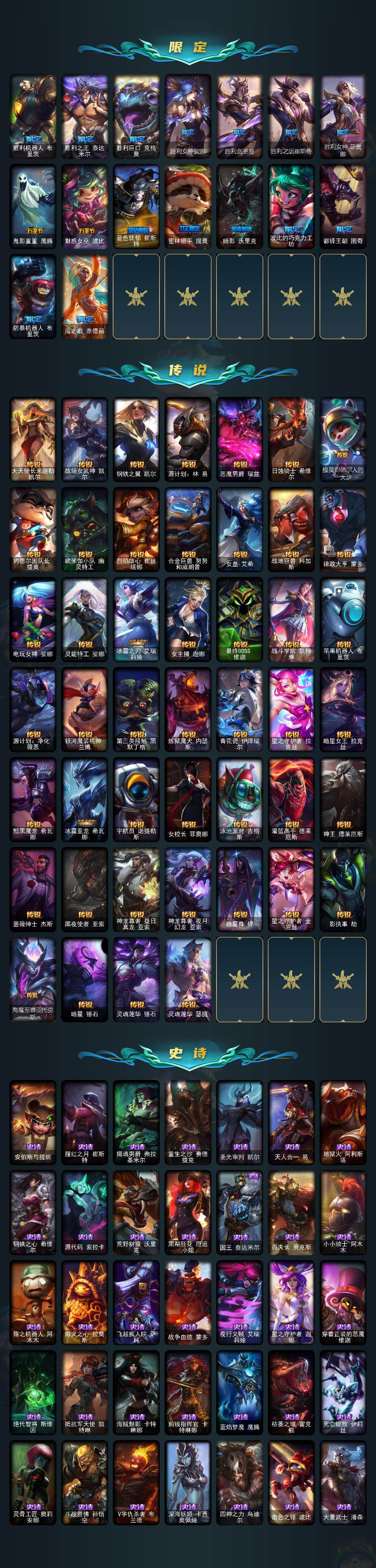 172英雄/395皮肤/2终极/20神话/48限定/10臻彩/167炫彩/46传说/75史诗