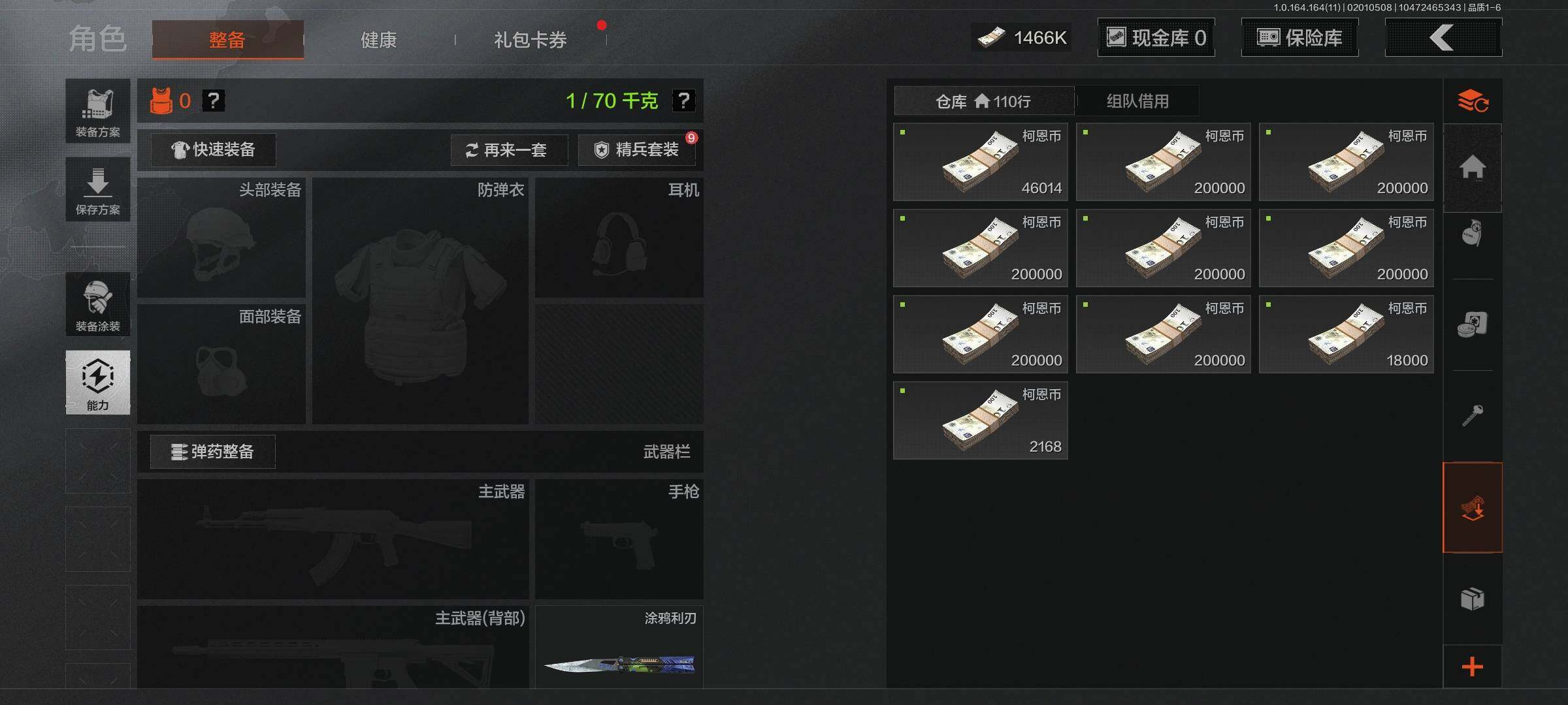仓库价值(百万):4.7/柯恩币:1466/来战开山刀/涂鸦利刃