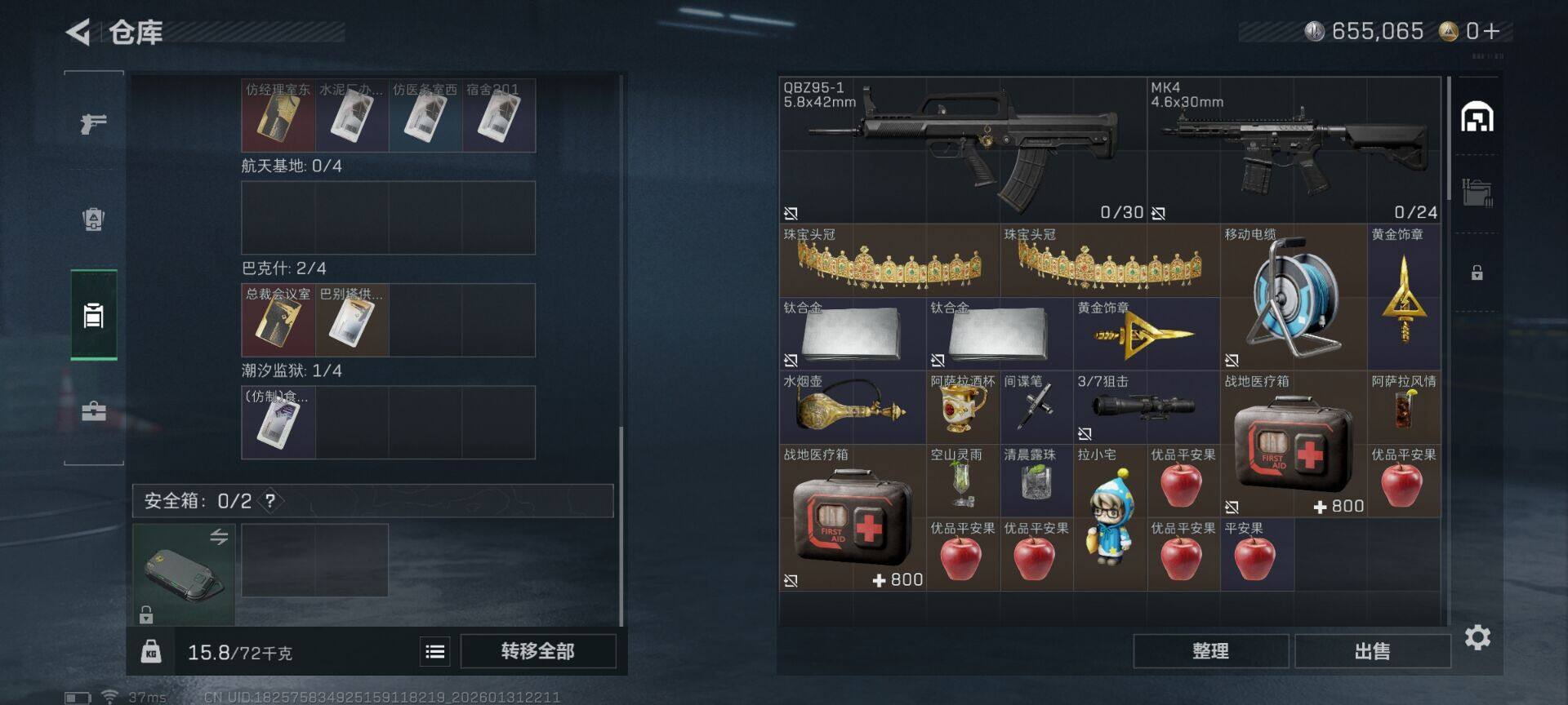 【SJZX1440】总资产(M):6M/哈夫币(K):655K/哈夫币(K):655K/传说枪皮数:3/全面战场等级:37_段位:上等兵/烽火地带等级:25_段位:青铜/骇爪-维什戴尔/近战-黑鹰/M4A1突击步枪-阿米娅/SCAR-H战斗步枪-启航/R93狙击步枪-维什戴尔/腾龙突击步枪-猎鳄行动/MP5冲锋枪-战术竞备/SR-3M紧凑突击步枪-战术竞备/M7战斗步枪-精英联盟/M7战斗步枪-捣蛋鬼/SCAR-H战斗步枪-荣耀列队/MP5冲锋枪-哈夫克卫队/P90冲锋枪-黄昏/P90冲锋枪-捣
