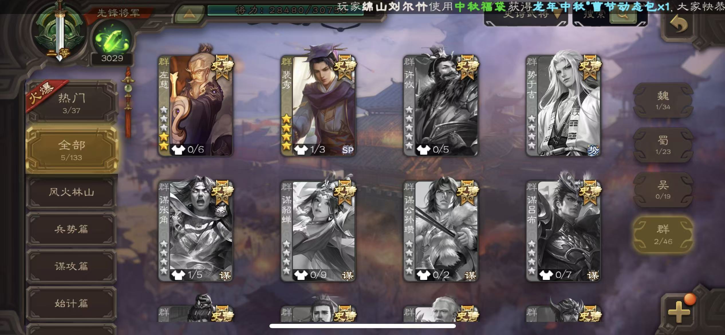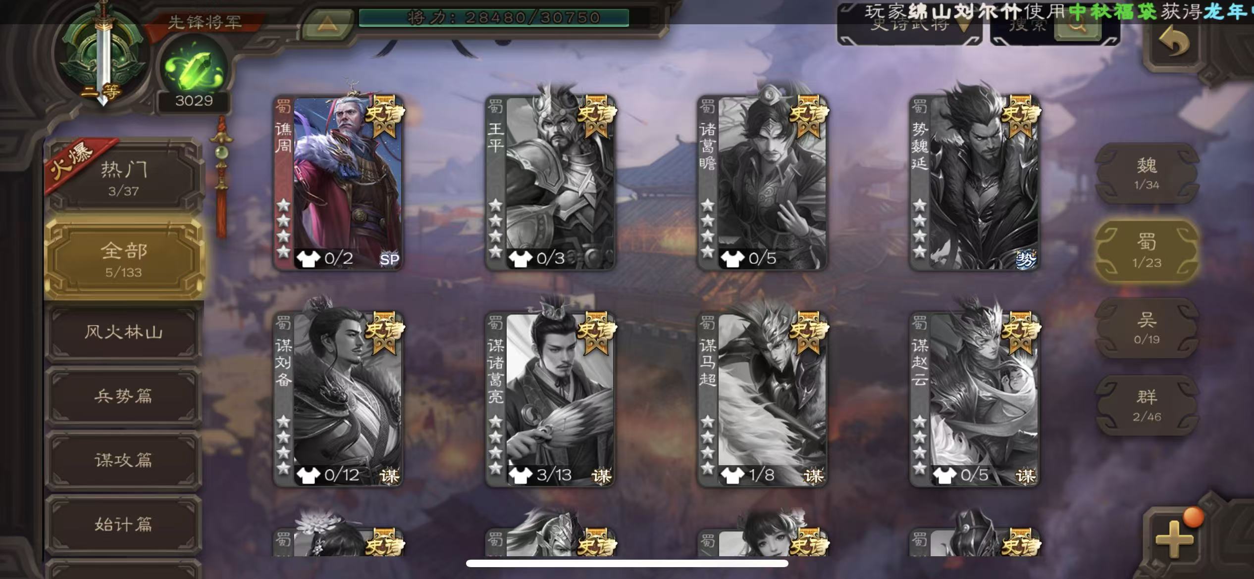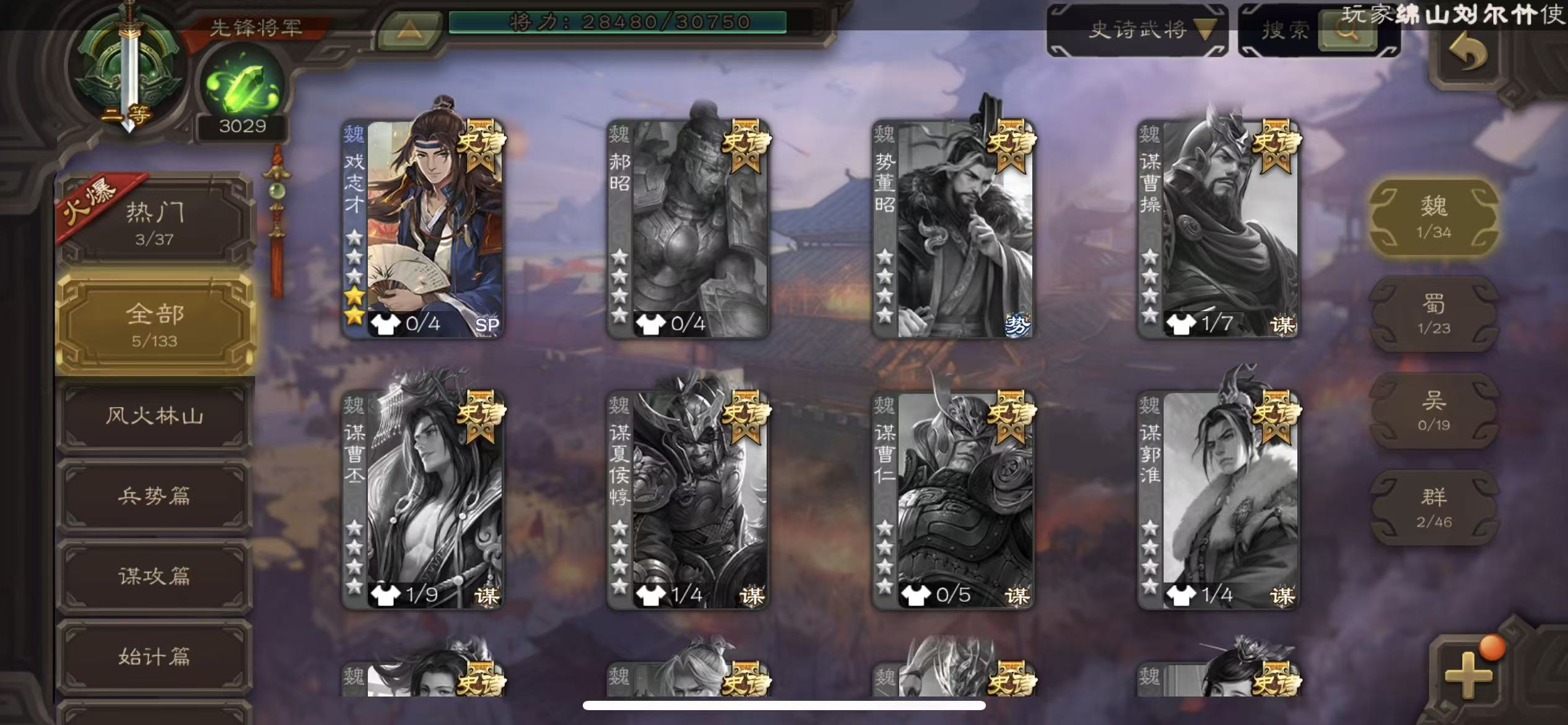 史诗武将数量: