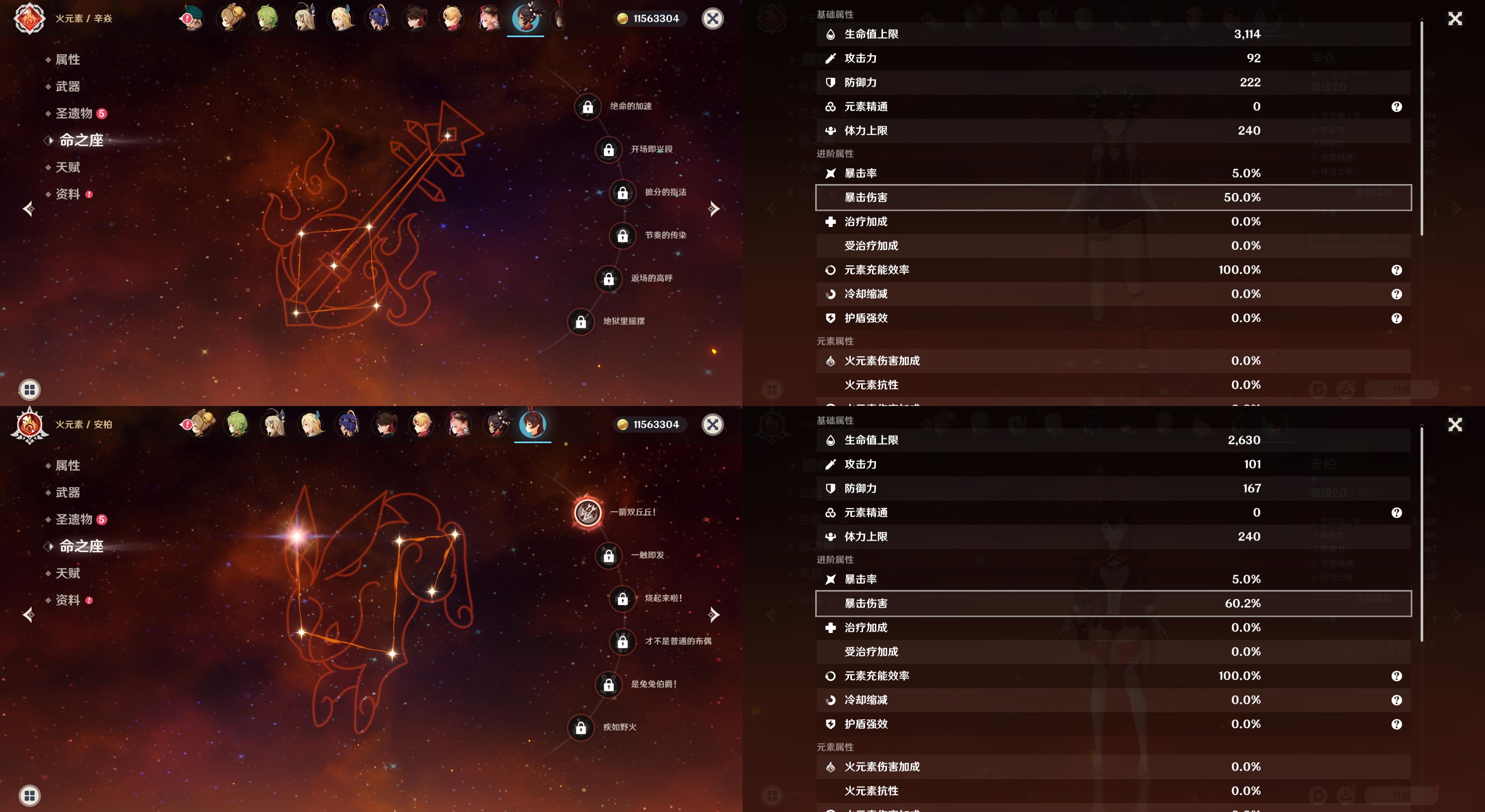 五星角色: