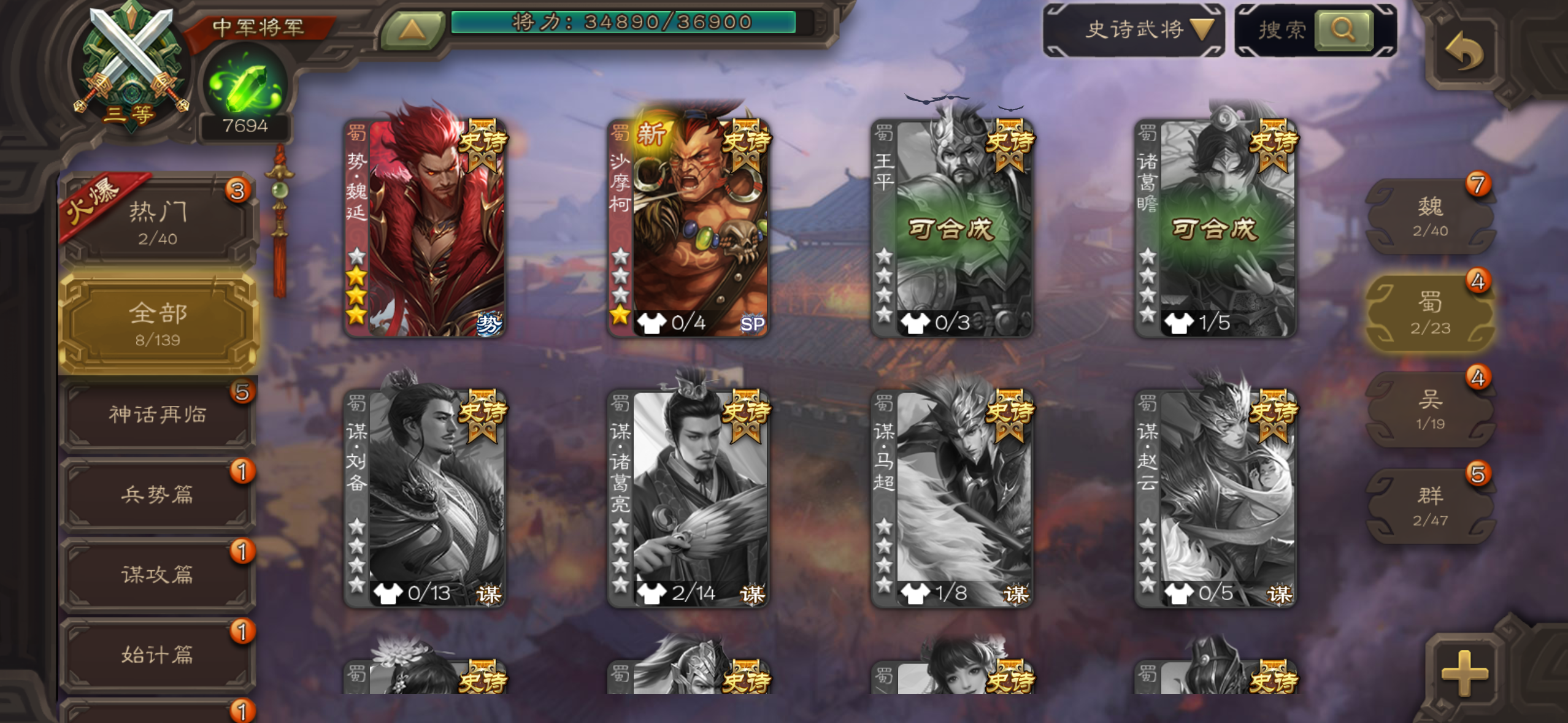 官服活绑中军连体势魏延友诸葛泽荣大宝等8个史诗