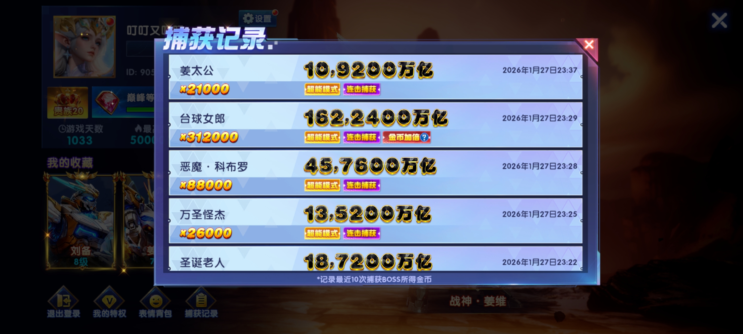 华为准21,准15套,加成1620,魅魔出站10万成就,带700兆金币