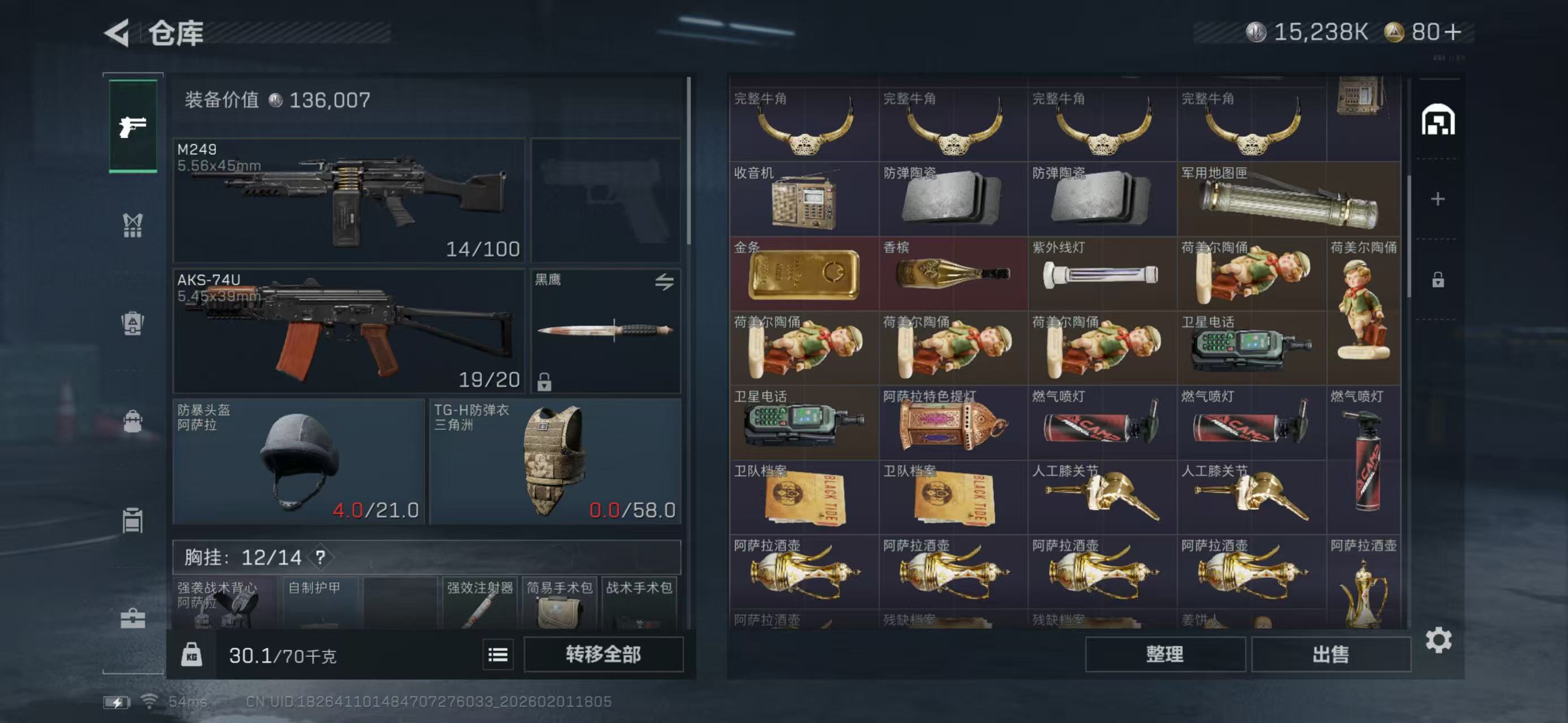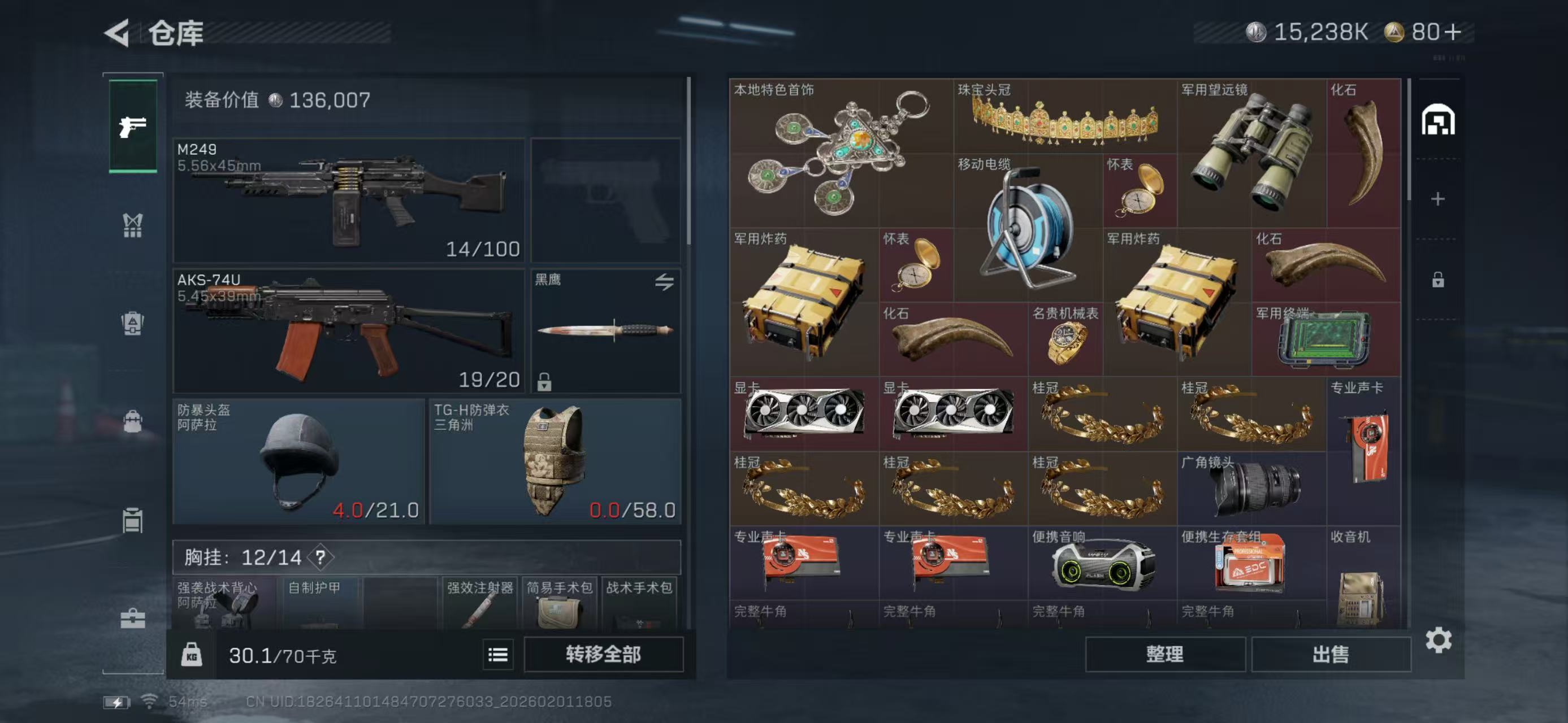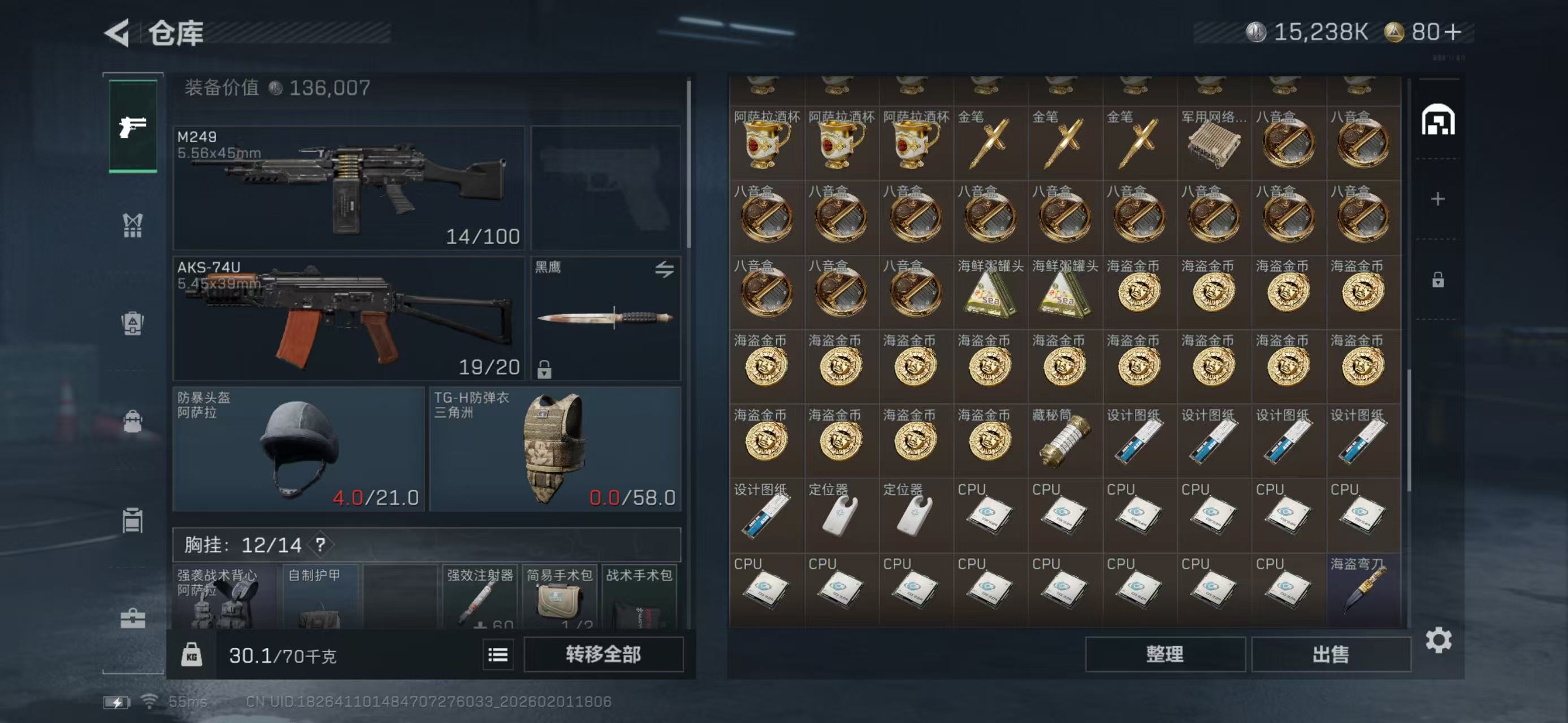 仓库总价值33.6m,现金1500万,有套卷有房卡