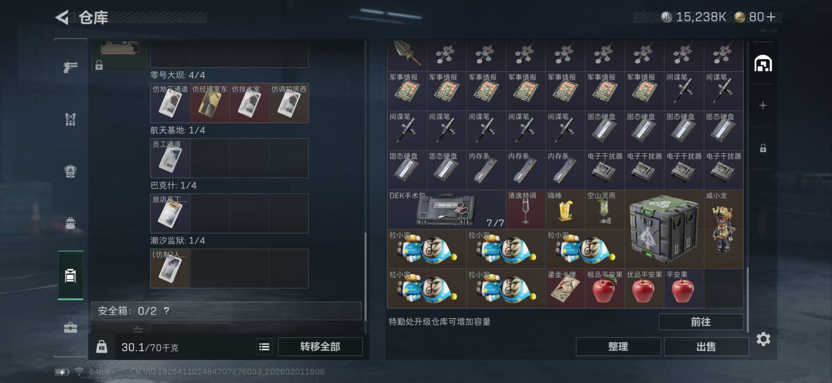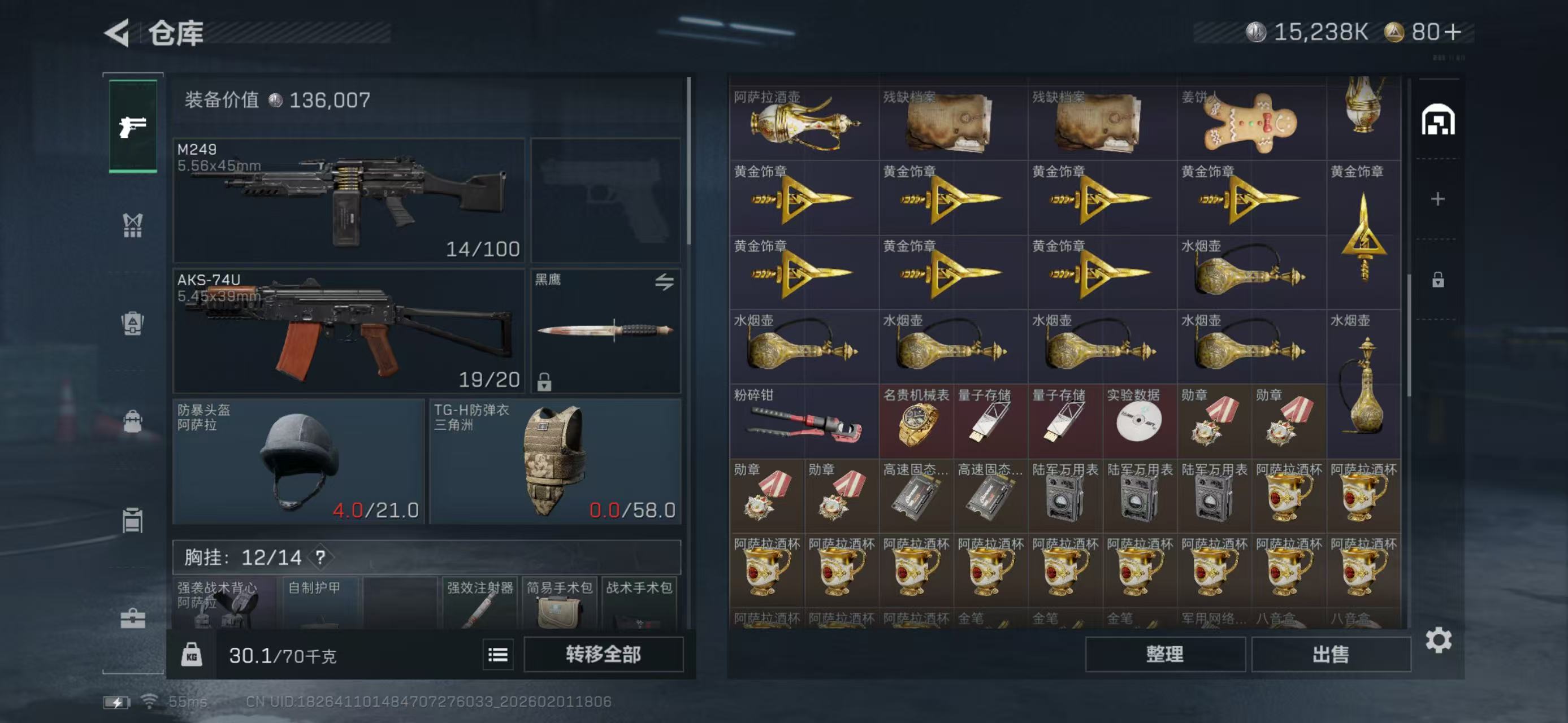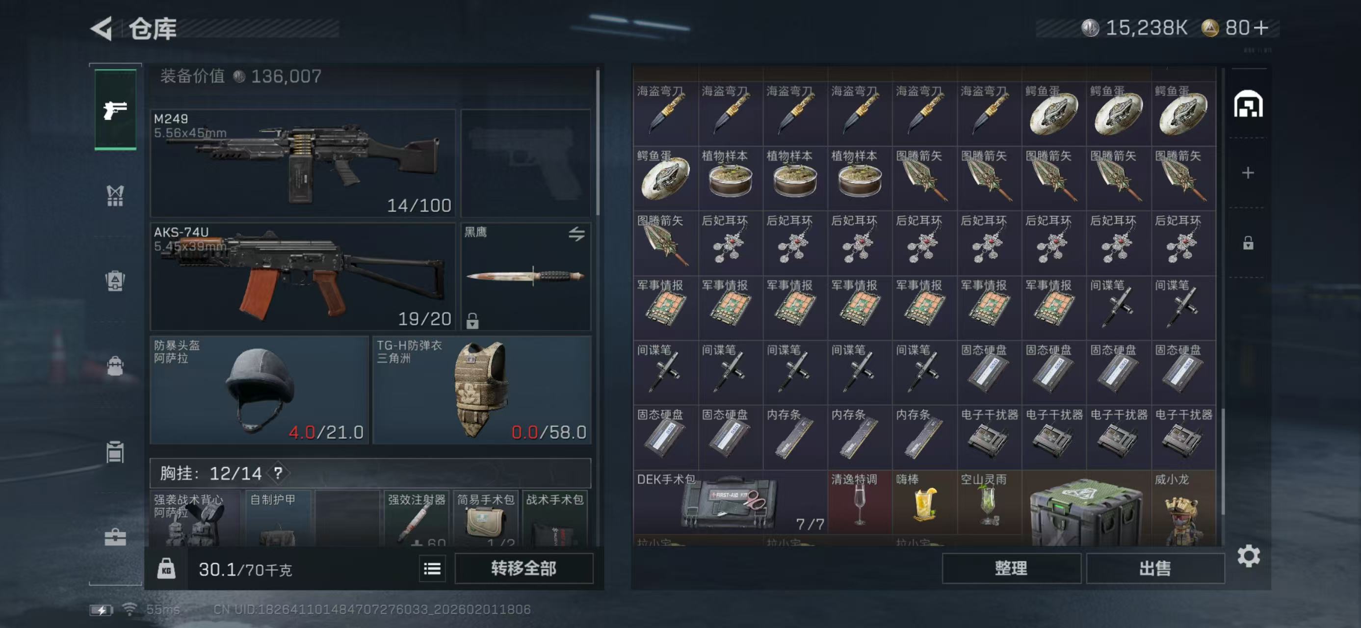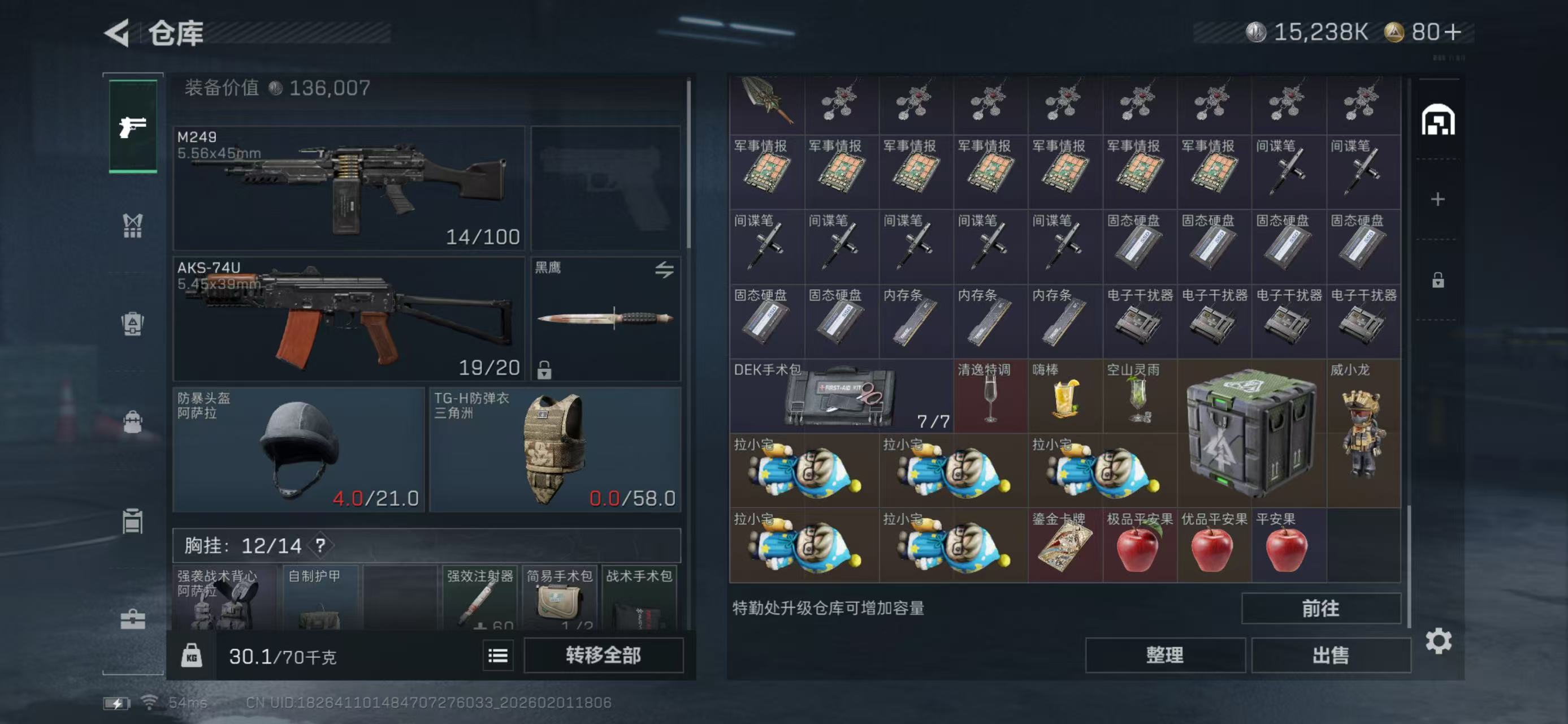 仓库总价值33.6m,现金1500万,有套卷有房卡