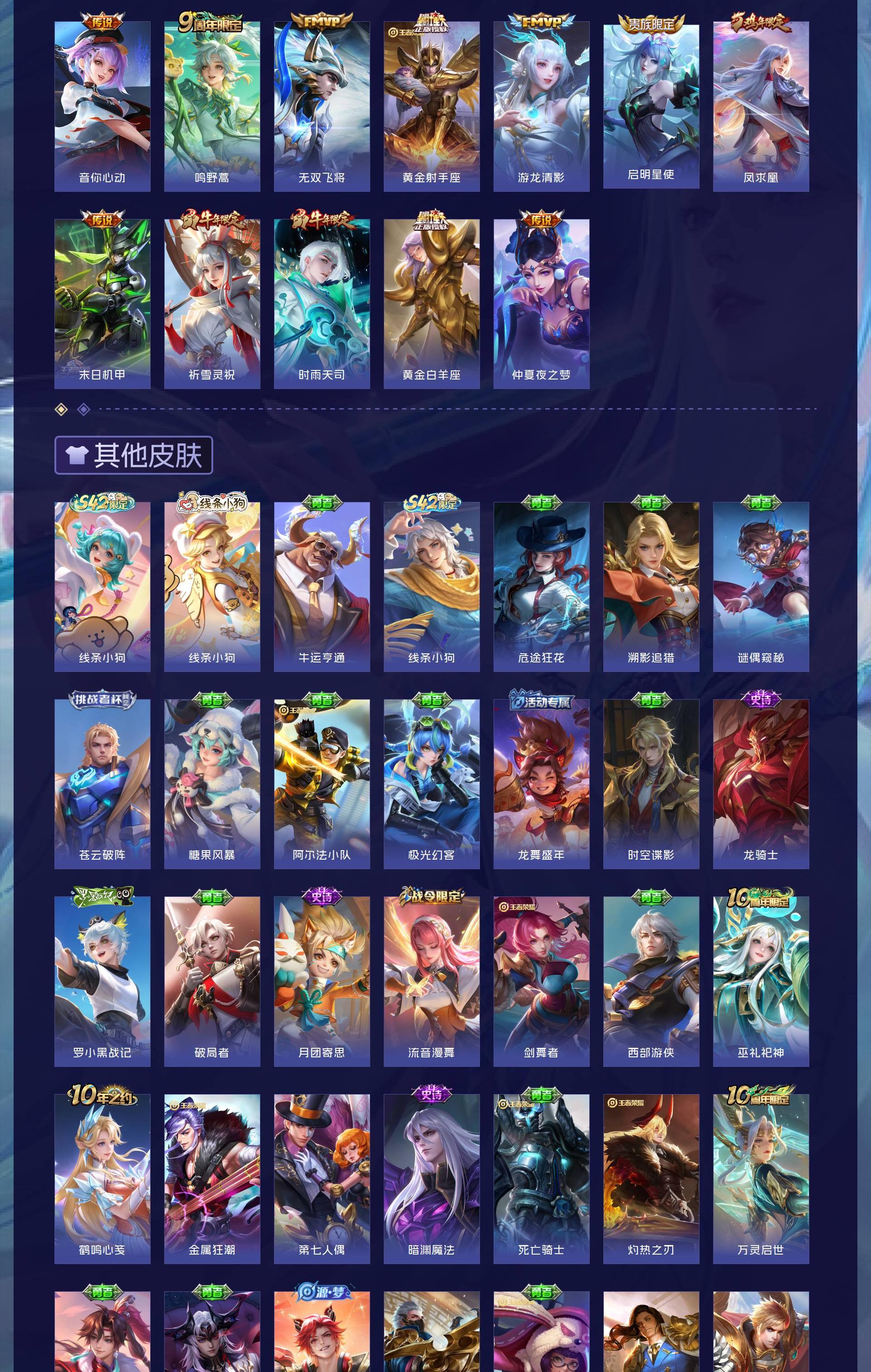 V9 皮肤381 英雄128 至尊星耀 荣耀典藏3 无双皮肤1 珍品传说1 传说19 其他皮肤360