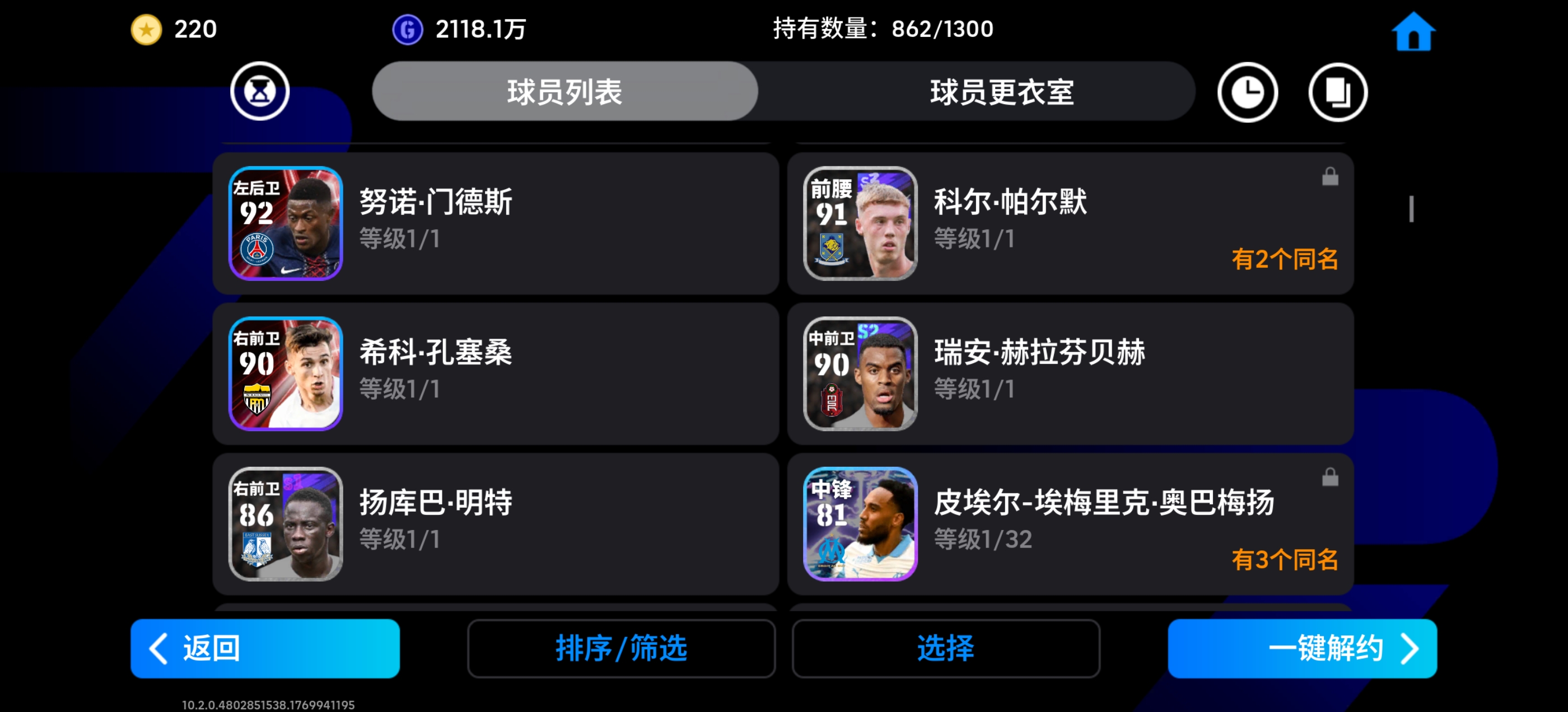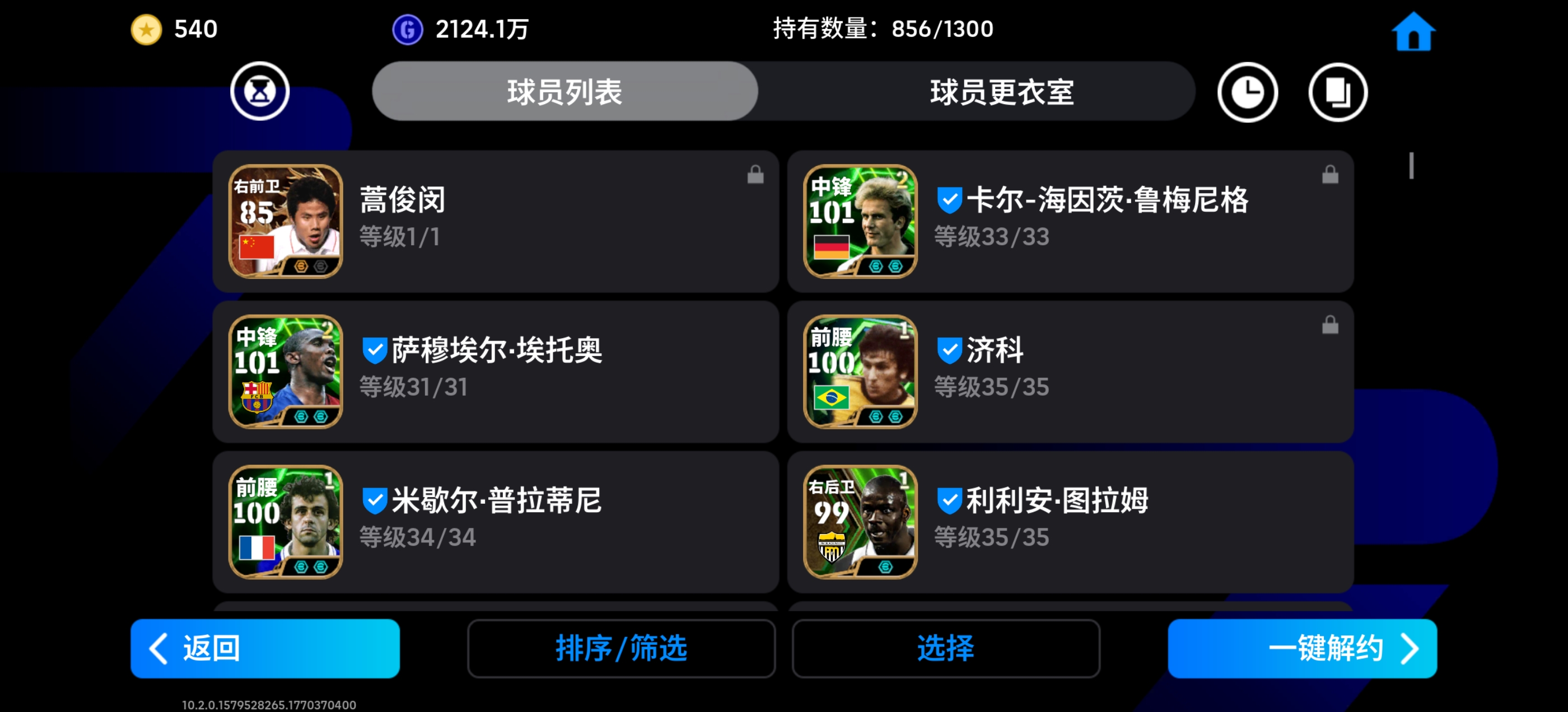 毕业神号,最强中锋鲁美,最强偷猎者埃托奥,影锋神兽赫内斯,最强门将树莓,影锋普拉蒂尼,绝版黄传小罗