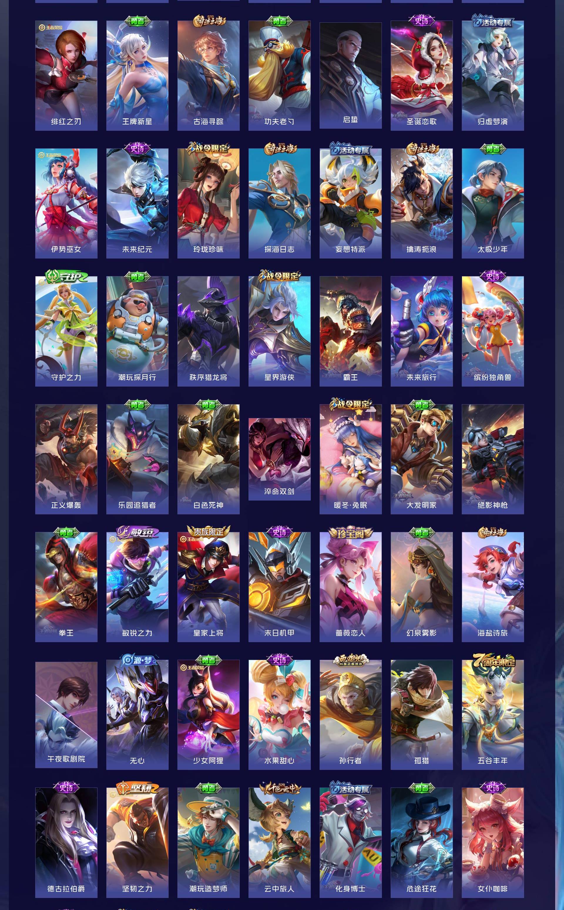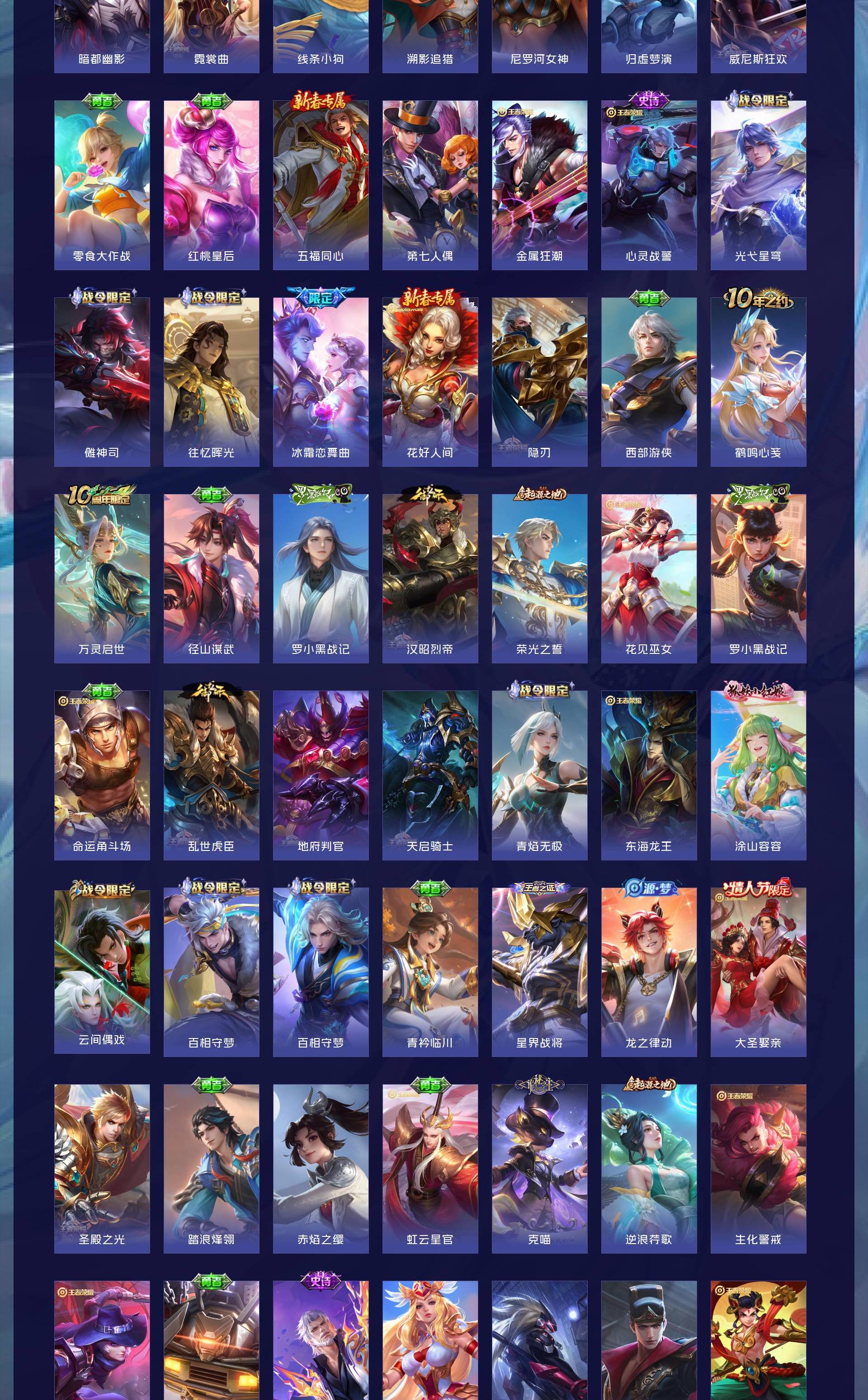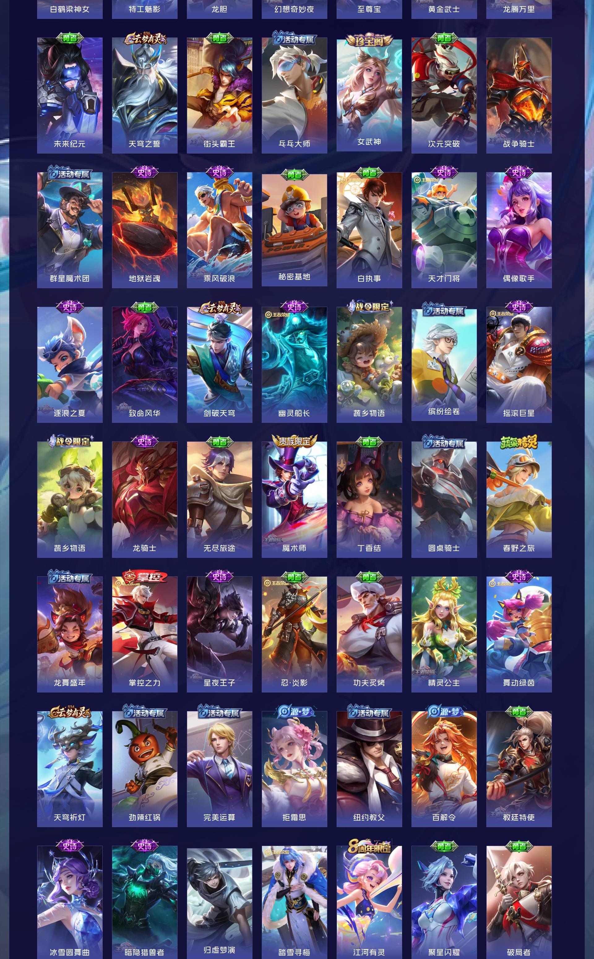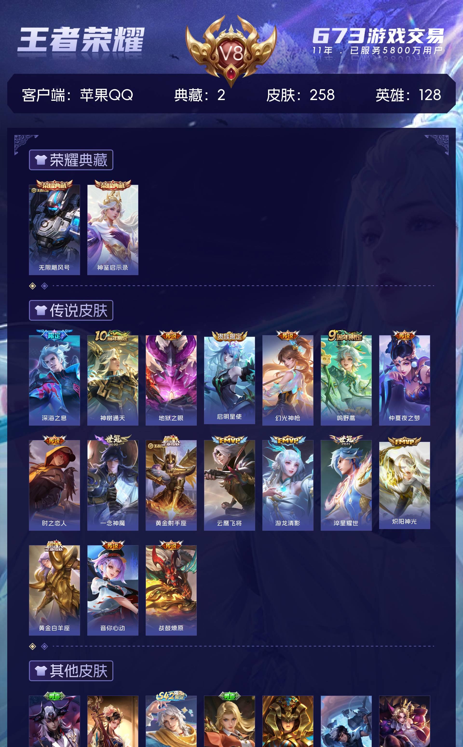 V8 皮肤258 英雄128 至尊星耀 荣耀典藏2 星传说1 传说17 其他皮肤244