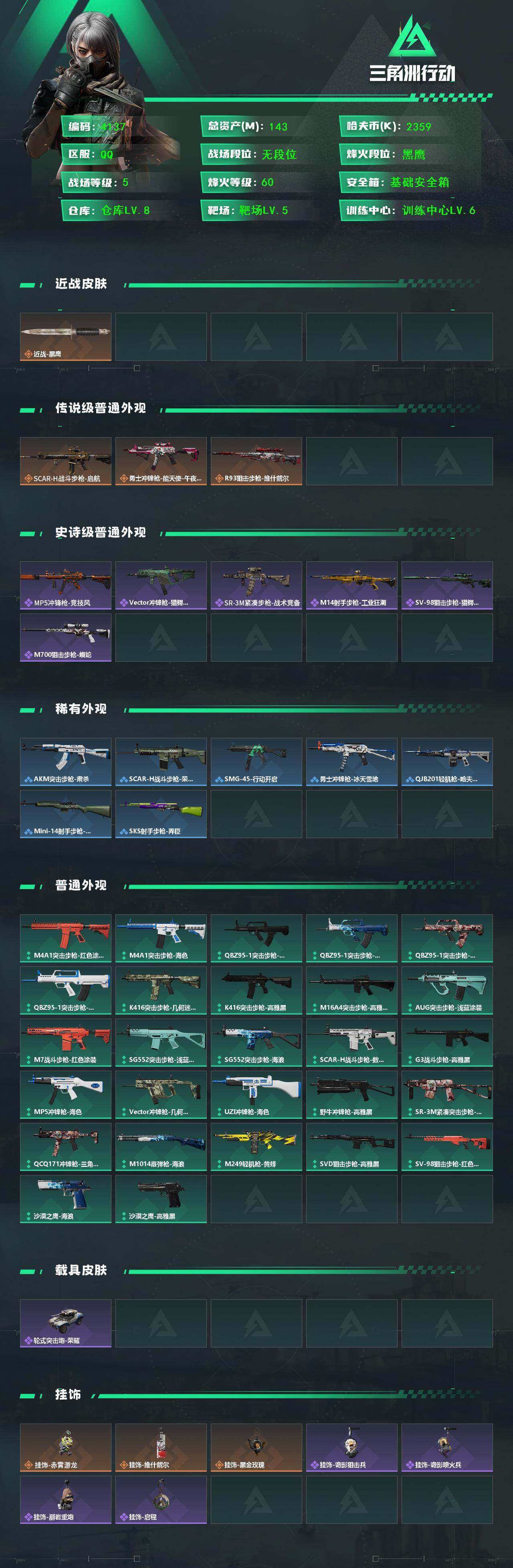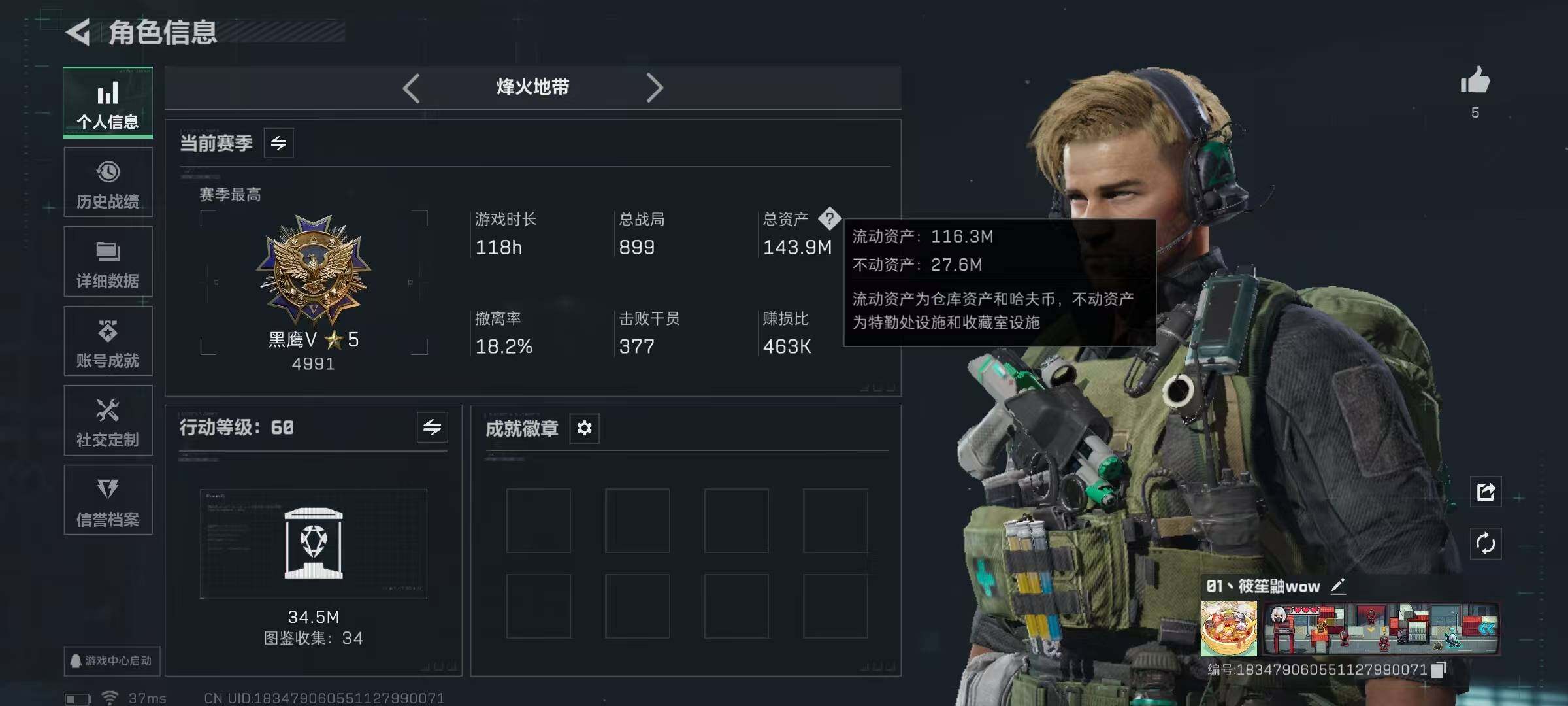 143m总资产-2359k哈伏币-60烽火等级-黑鹰-5战场等级-无军衔