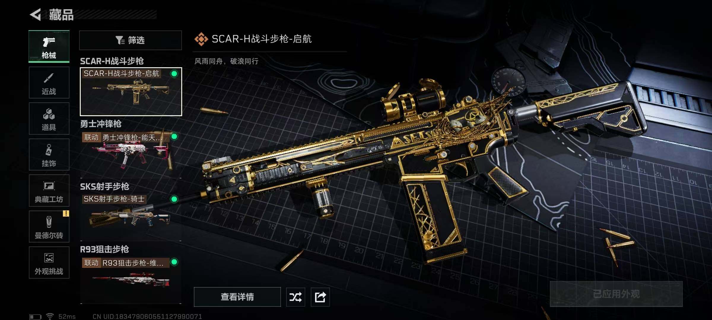 【传说外观】:SCAR-H战斗步枪-启航,勇士冲锋枪-能天使-午夜邮差,R93狙击步枪-维什戴尔