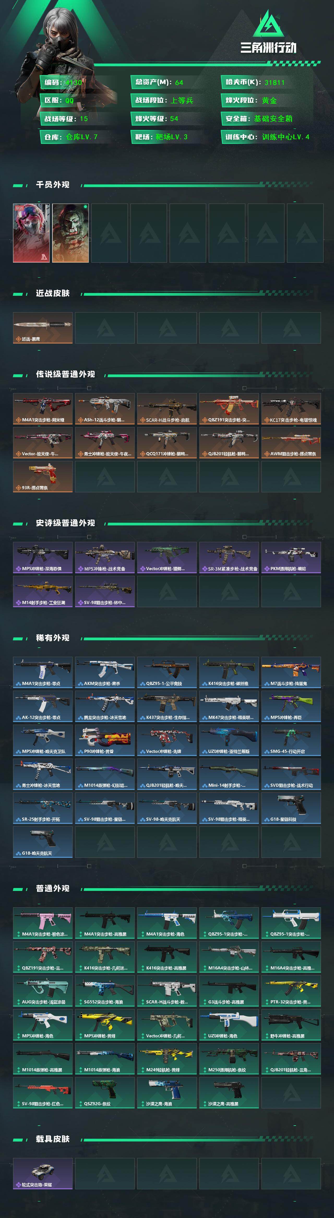 64m总资产-31811k哈伏币-54烽火等级-黄金-15战场等级-上等兵