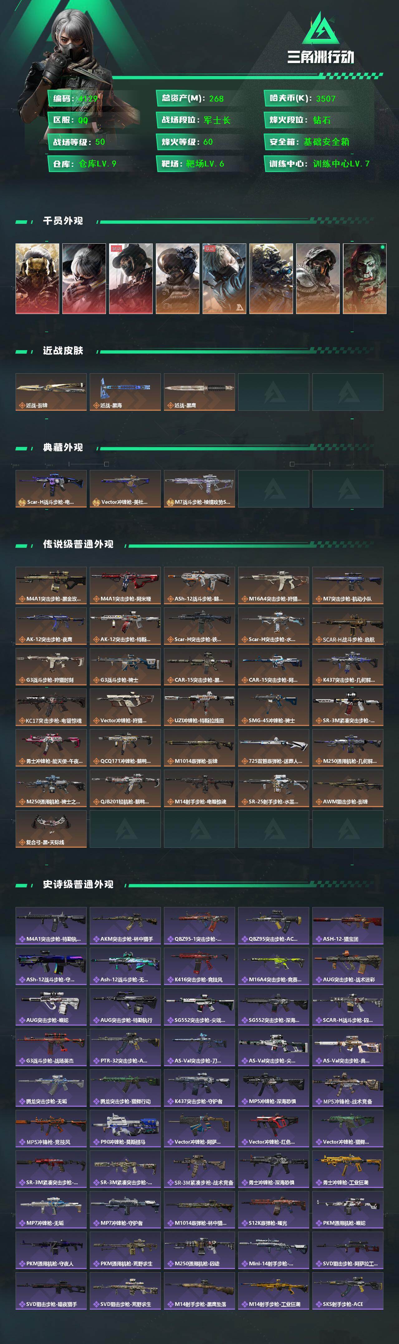 268m总资产-3507k哈伏币-60烽火等级-钻石-50战场等级-军士长