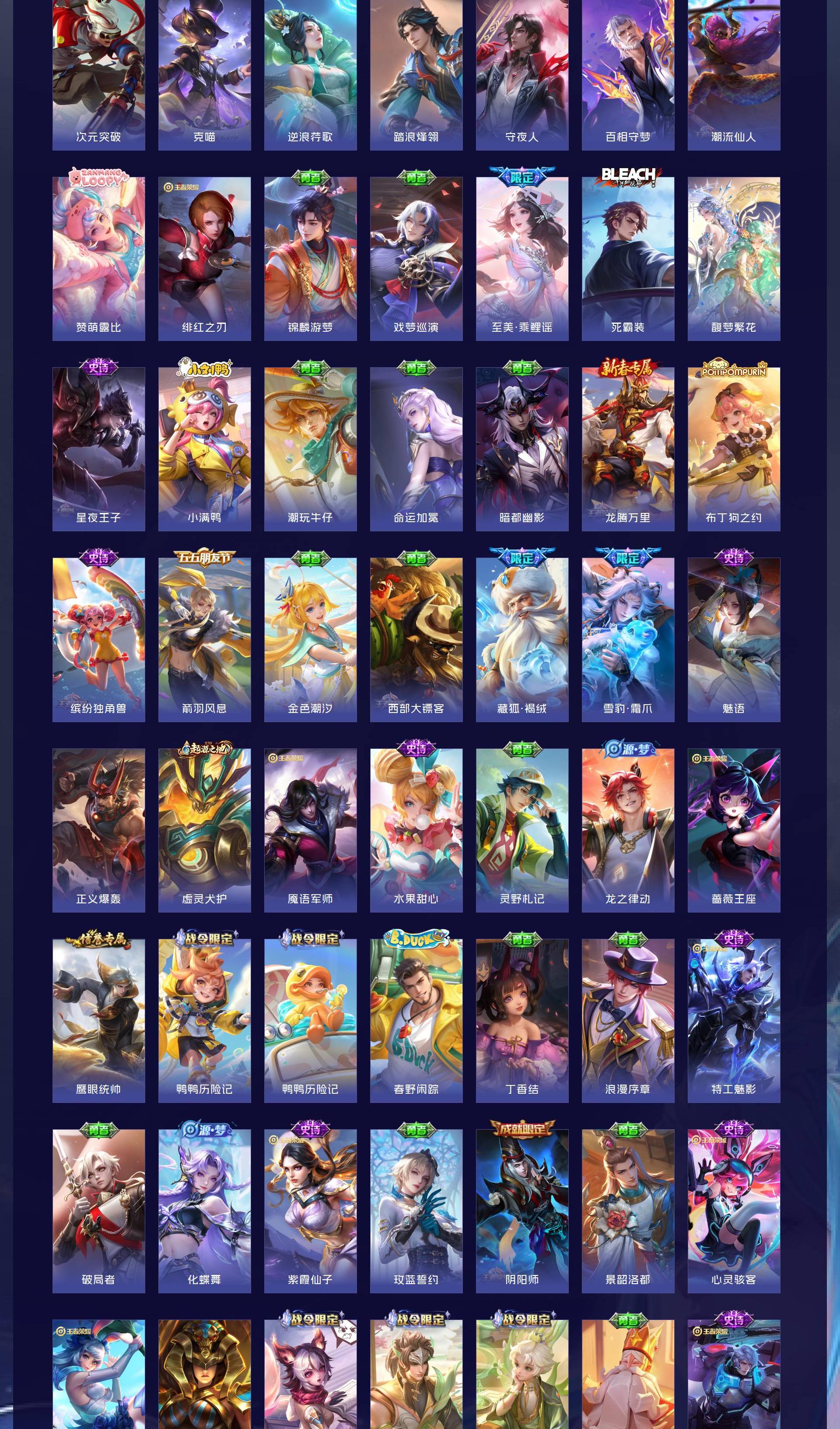 V7 皮肤146 英雄124 至尊星耀 荣耀典藏2 珍品无双1 无双皮肤1 珍品传说3 传说12 其他皮肤133