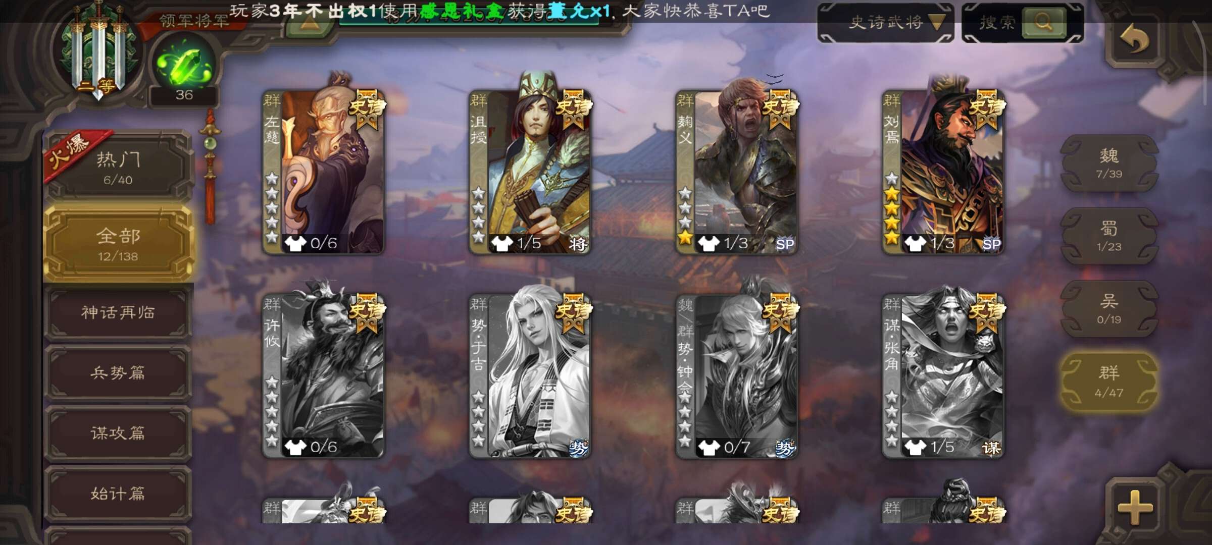 史诗武将数量: