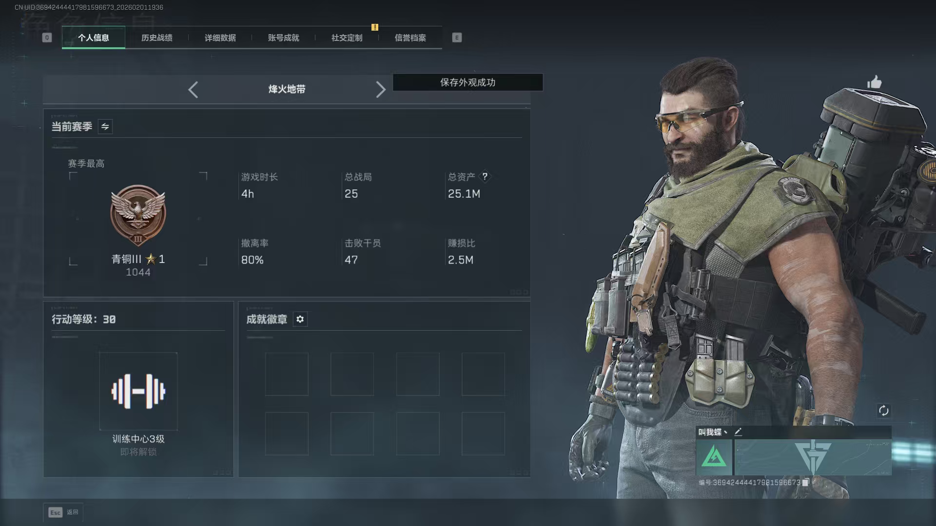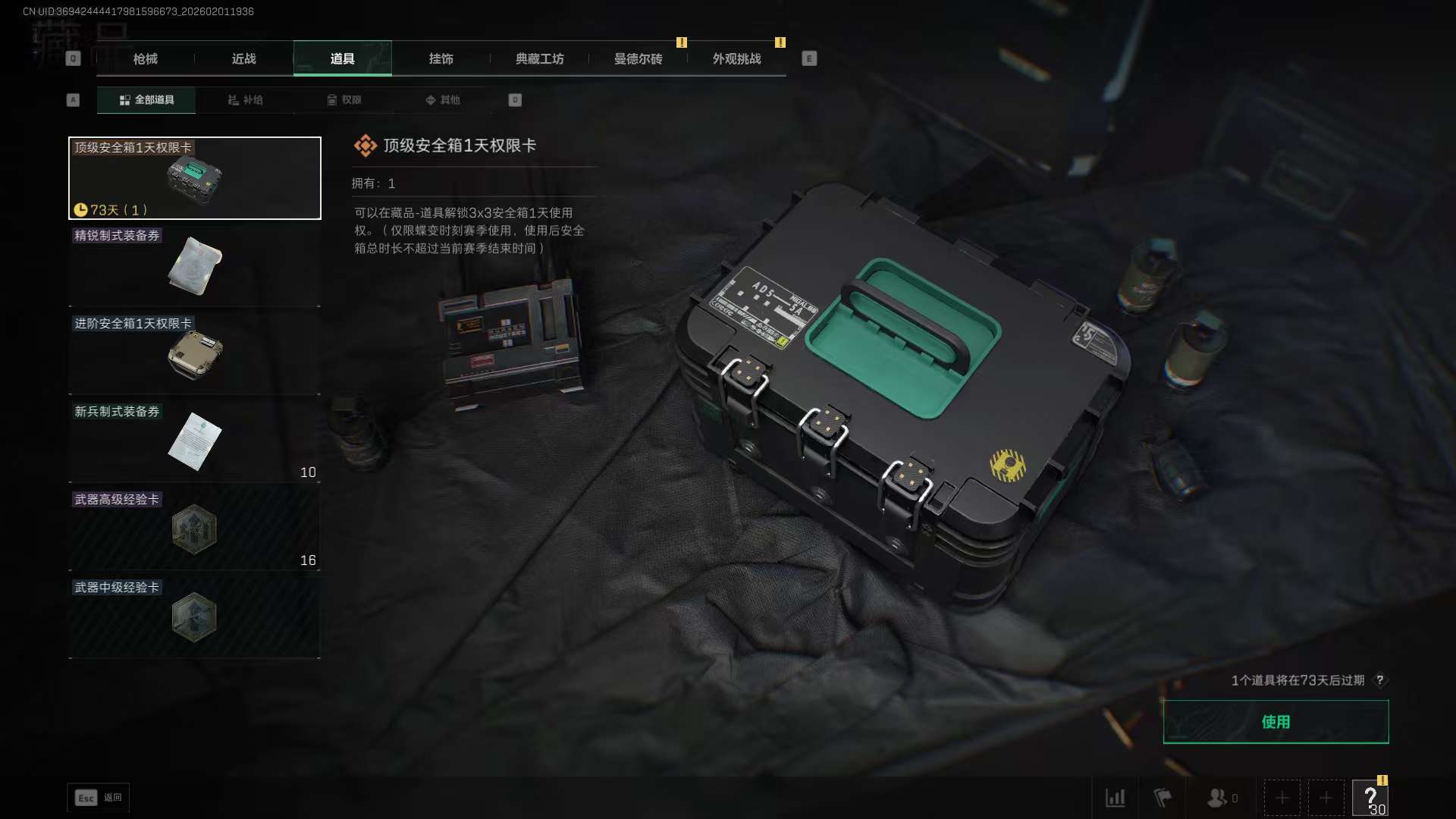 三角洲30级端游账号2100w哈弗币+蝶乌鲁鲁+10AWM+两金甲修+两红甲修+3*3体验卡一天。