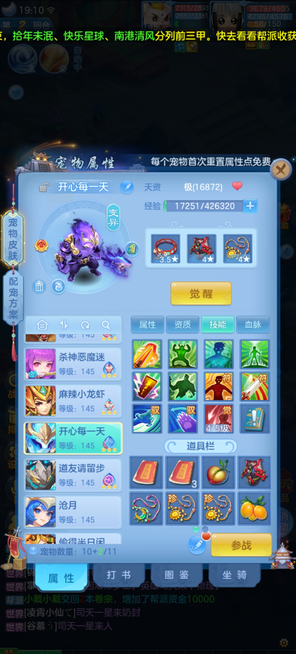 装备宝宝齐全,有固定队,一条帮战无忧。