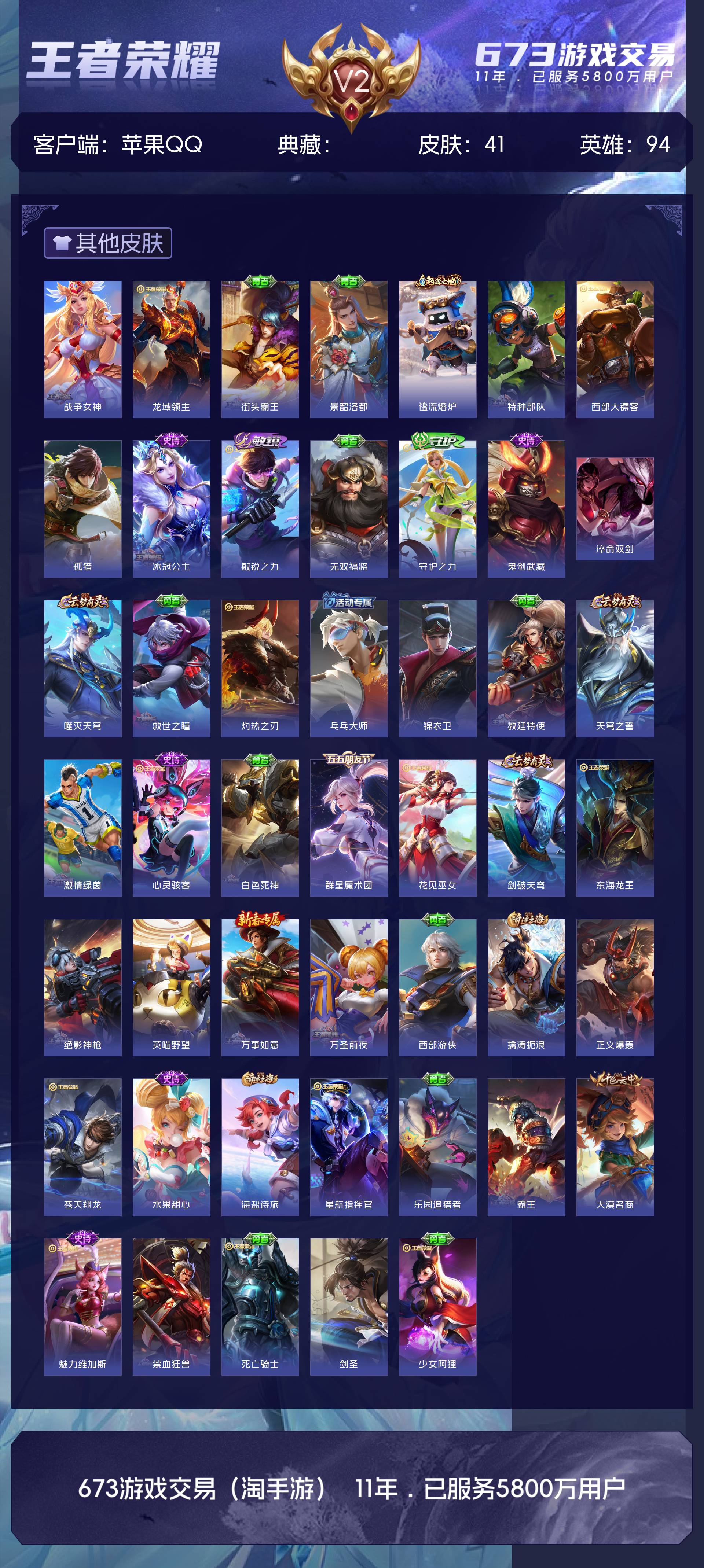 V2 皮肤41 英雄94 永恒钻石 其他皮肤47