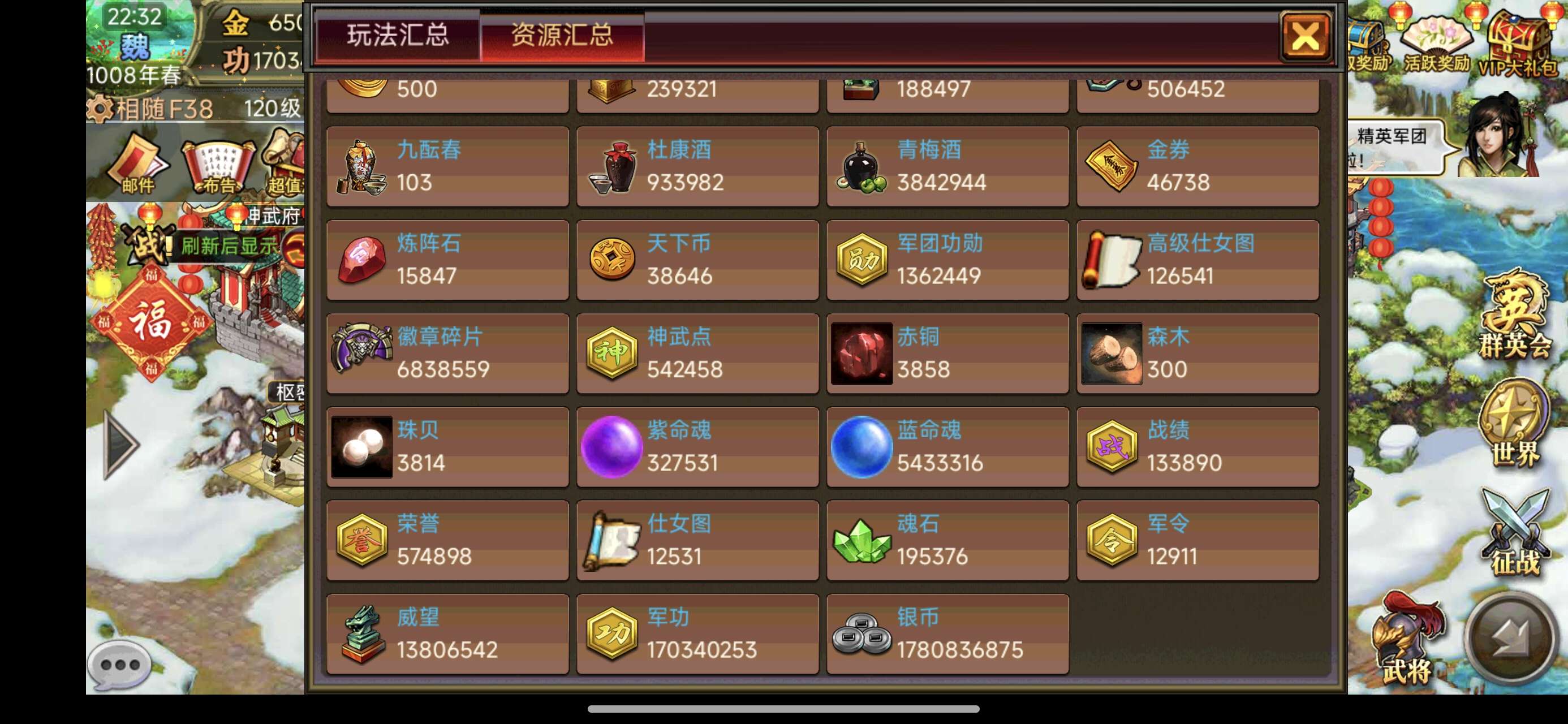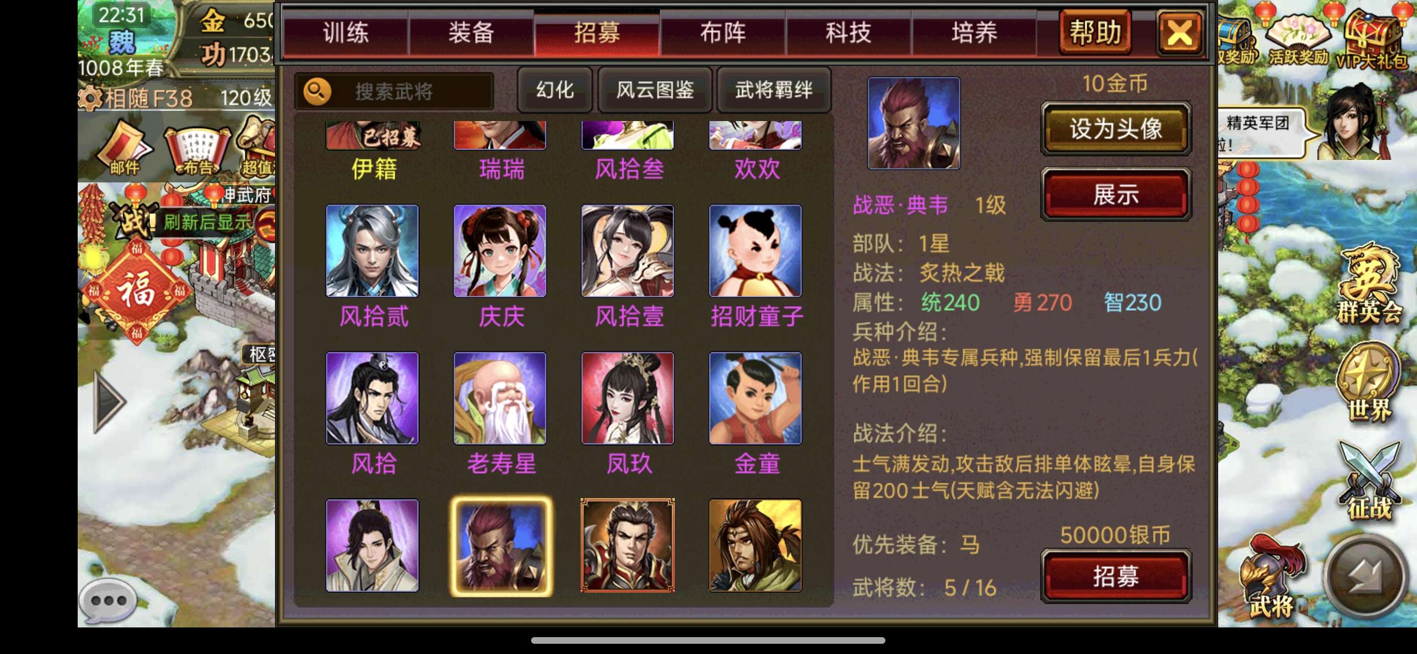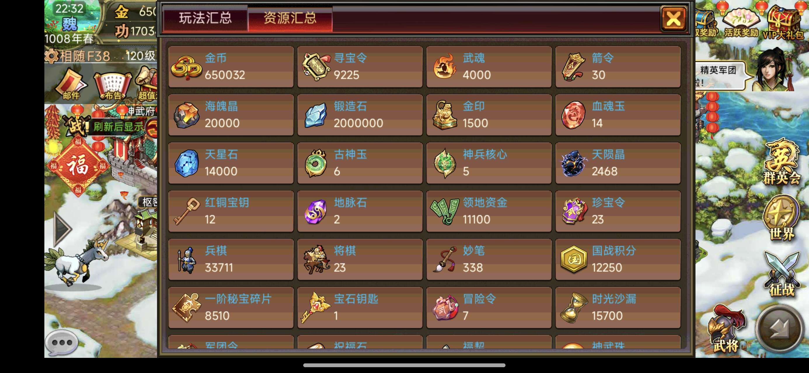 还价勿扰,金65万,自带15万神将战恶典韦,充了老玩家,酒多资源好,夷陵势力