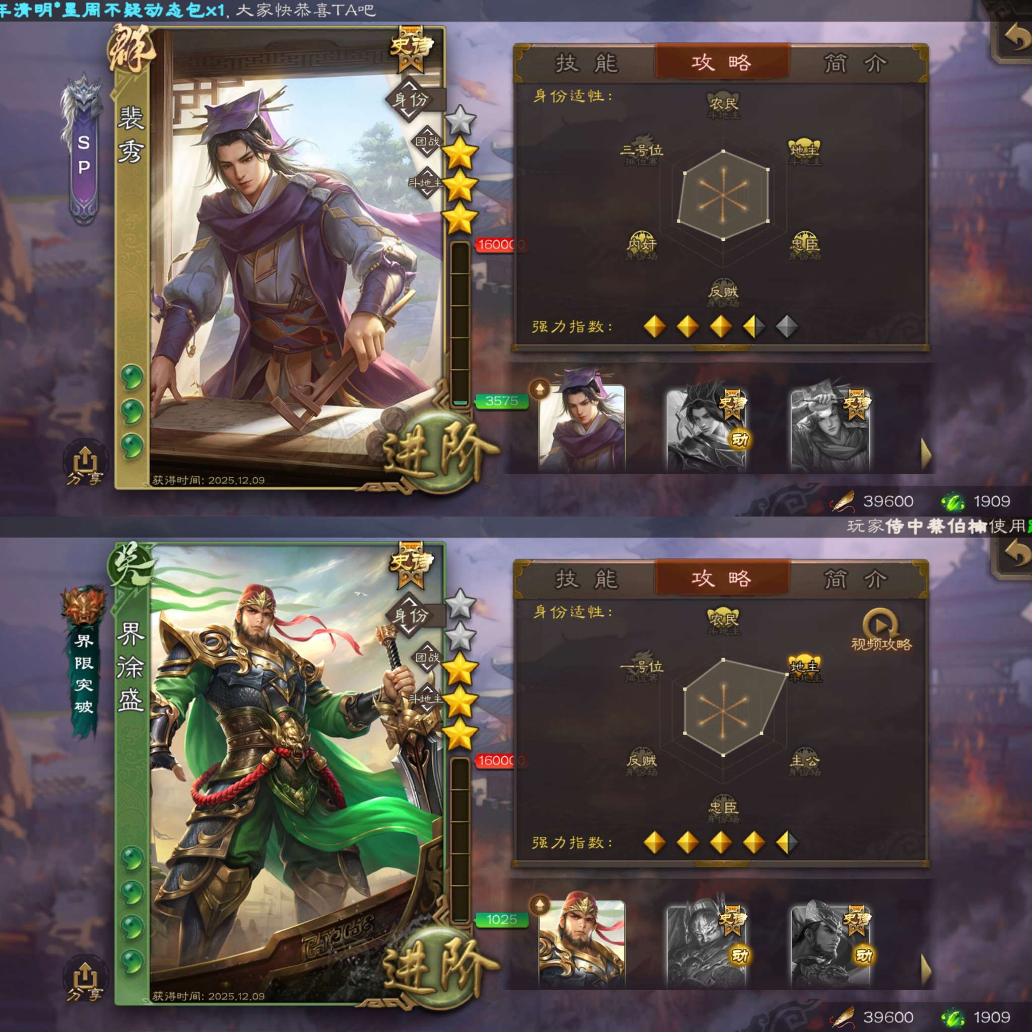 曹髦+势太史慈+裴秀+界徐盛+动态星甘宁精品中军将军!三卡材料充足,官服字母格式活绑