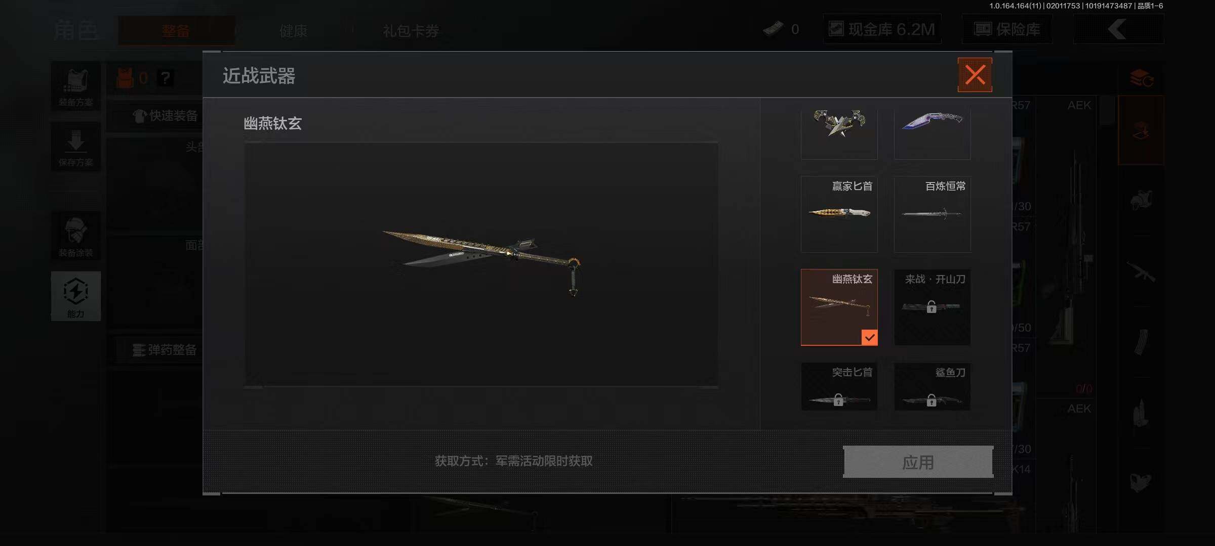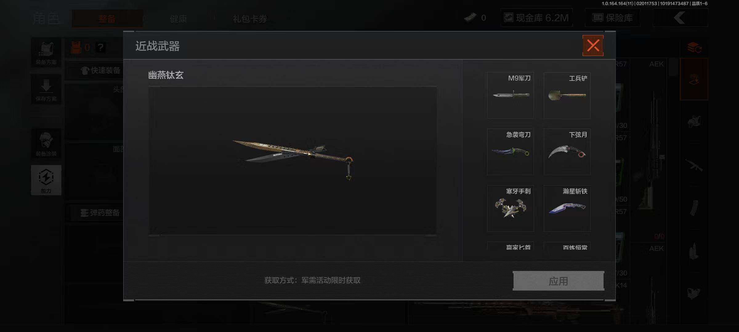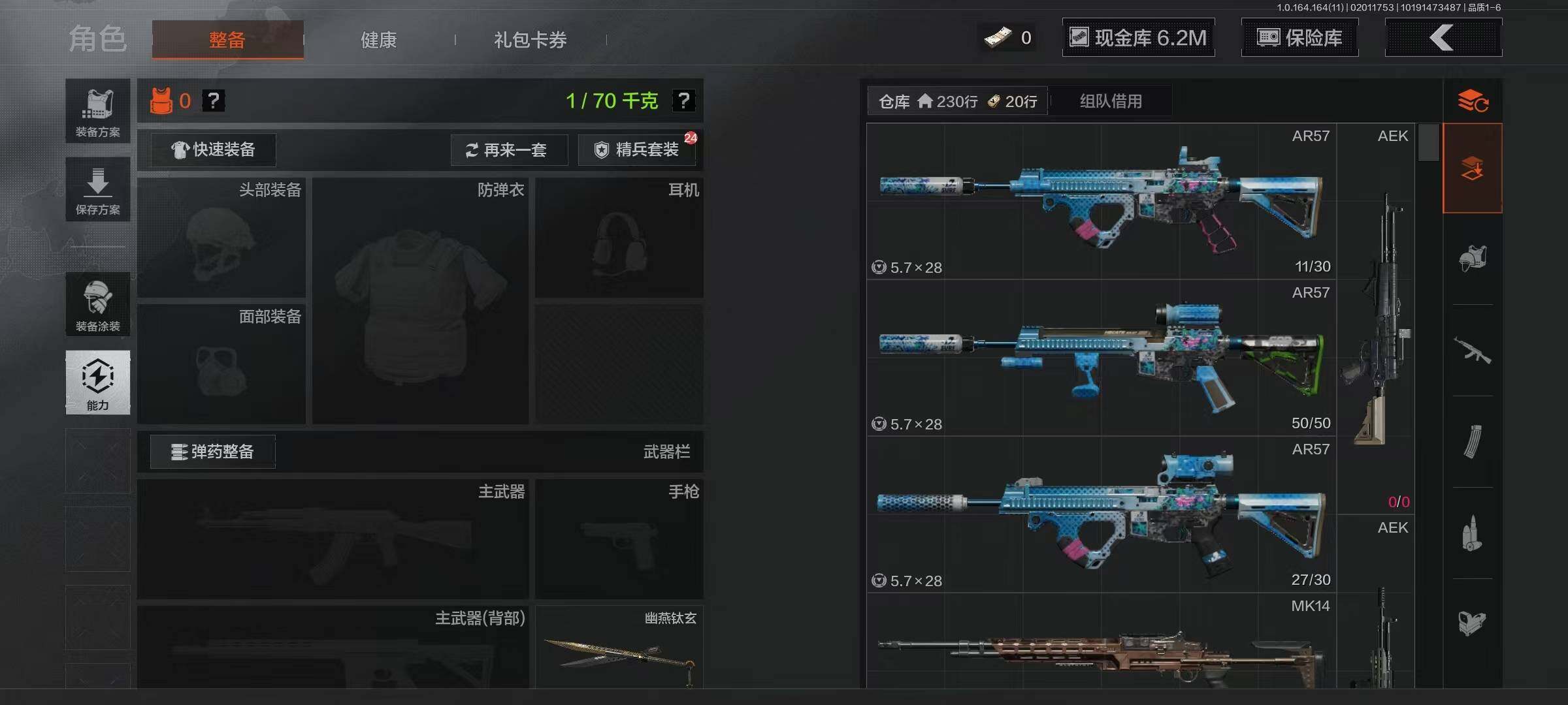【AQZG1137】等级:30/段位:王牌/仓库价值(百万):78.4/柯恩币:6222871/幽燕钛玄/百炼恒常/赢家匕首/瀚星斩铁/寒牙手刺/下弦月/急袭弯刀/工兵铲/白蔷薇斯黛拉/黑卡蒂/冥河/危崖魅影作战服/深潜行者II/竞技FAL/告丧夜曲AR57/旗帜AEK/玉擎天工AN94/玉擎天工MP5/骑士之剑VSS/棱光裂变QBU191/骑士之剑AX50/近卫荣誉RPK16/清影
