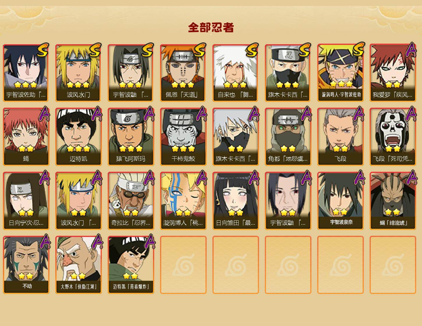 【HYX3550】V3/S忍7/A忍20/忍界大战-日向宁次/2星大野木「侠隐江湖」/疾风传-我爱罗/死司凭血-飞段/永恒万花筒-宇智波佐助/须佐能乎-旗木卡卡西/蝎/天道-佩恩/3星漩涡鸣人·宇智波佐助/地怨虞-角都/波风水门/桃式显现-漩涡博人/忍界大战-奇拉比/万花筒写轮眼-旗木卡卡西/3星干柿鬼鲛/青年-波风水门/2星蝎「绯流琥」/舞之豪杰-自来也/最终章-日向雏田/飞段/夏日限定-宇智波鼬/2星宇智波泉奈/3星迈特凯/2星不动/3星猿飞阿斯玛/2星迈特凯「青春爆炸」/须佐能乎-宇智波鼬