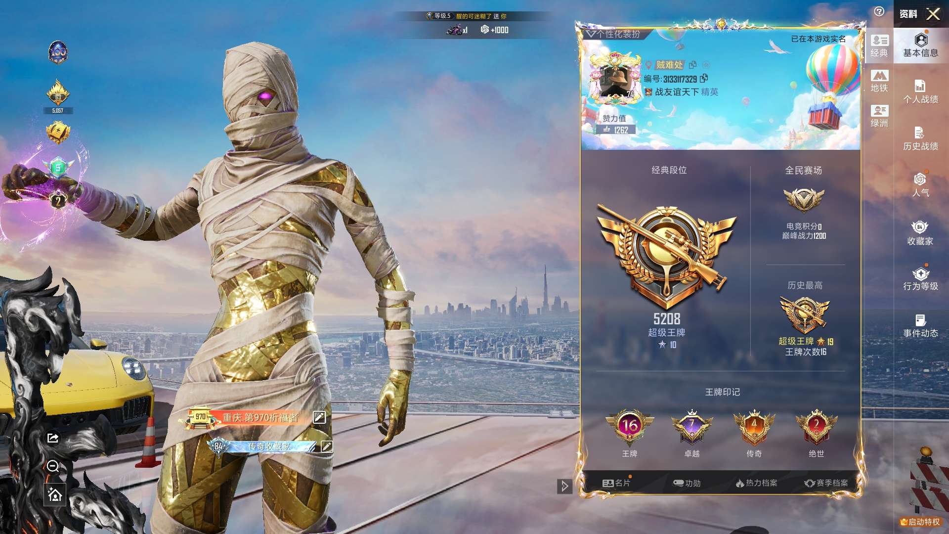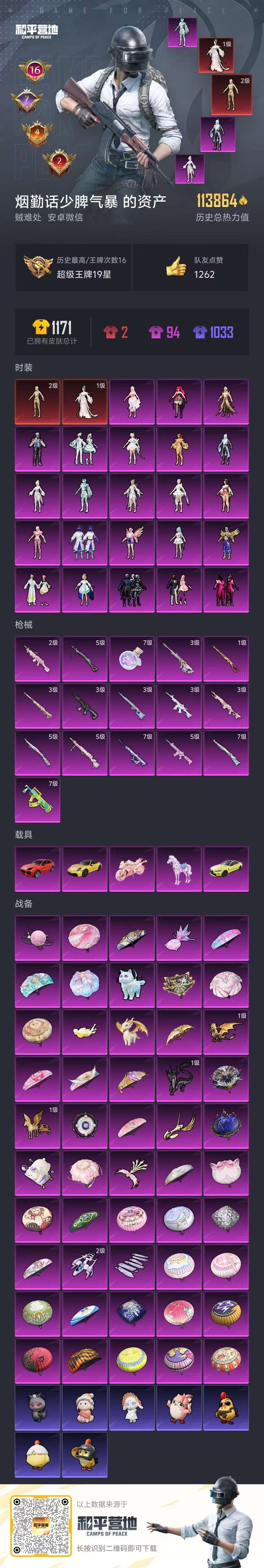 a4271/安卓v/16王牌印记-2红装-23粉装-16特效枪-5载具-113864热力值-202