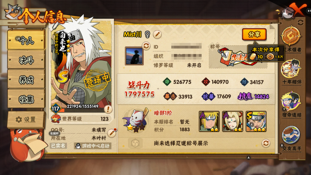 (可转苹果)179w战力三自4S+妖纲9A战力179账号等级
